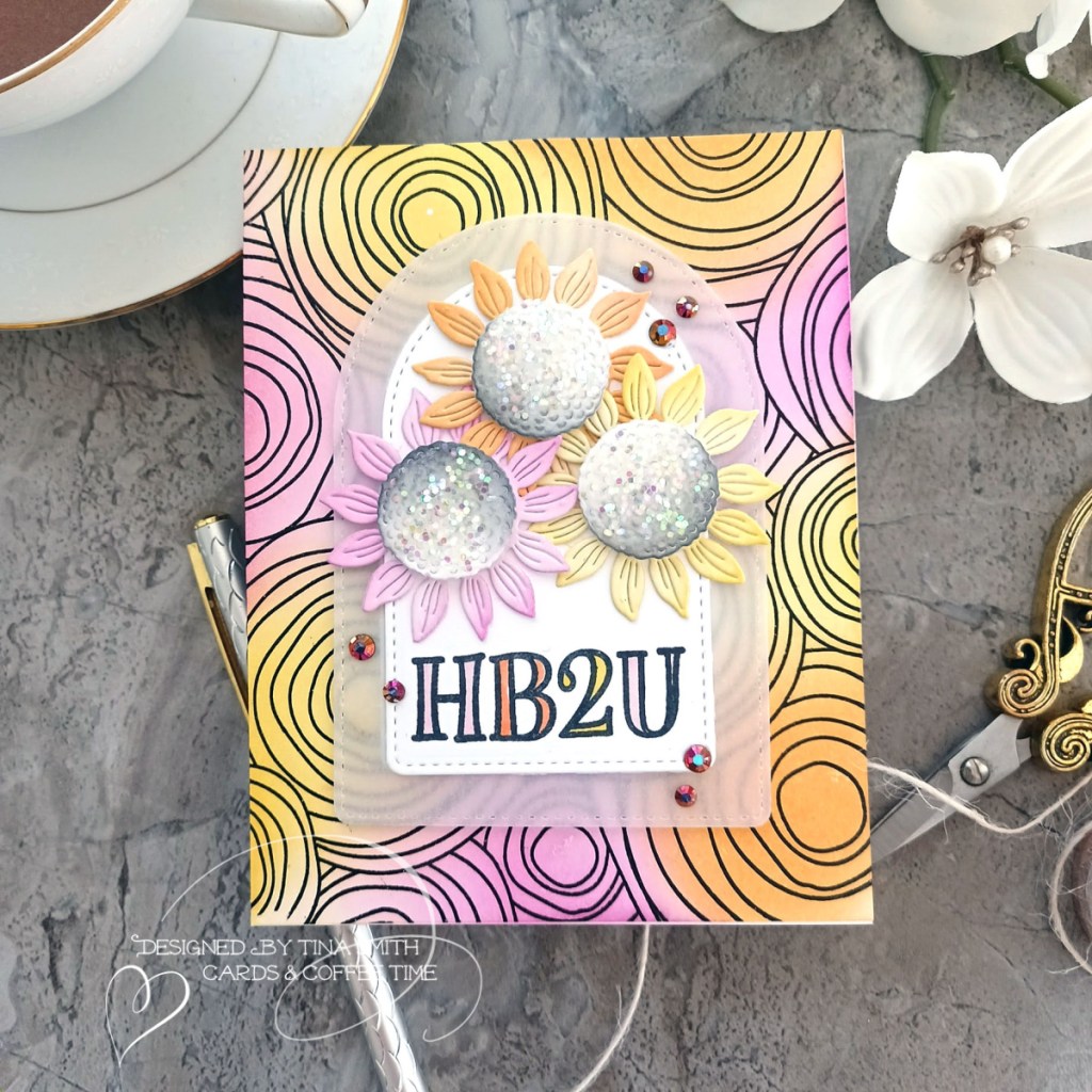 Hello Crafty Friends! I hope your having a great Tuesday! Going for a Groovy HB2U card with the @SimonSaysStamp Little Sunflowers Bloom Die and the Birthday Shenanigans Stamp. Both are part of the fabulous Simon Says Stamp OUT OF THIS WORLD Release. I created an ink blended stenciled background with the Circle Doodle Stamp. I ink blended the sunflowers with coordinating colors and added sparkle to the centers for an out of this world groovy look! Watch the How-to Tutorial down below! I hope you like my project!