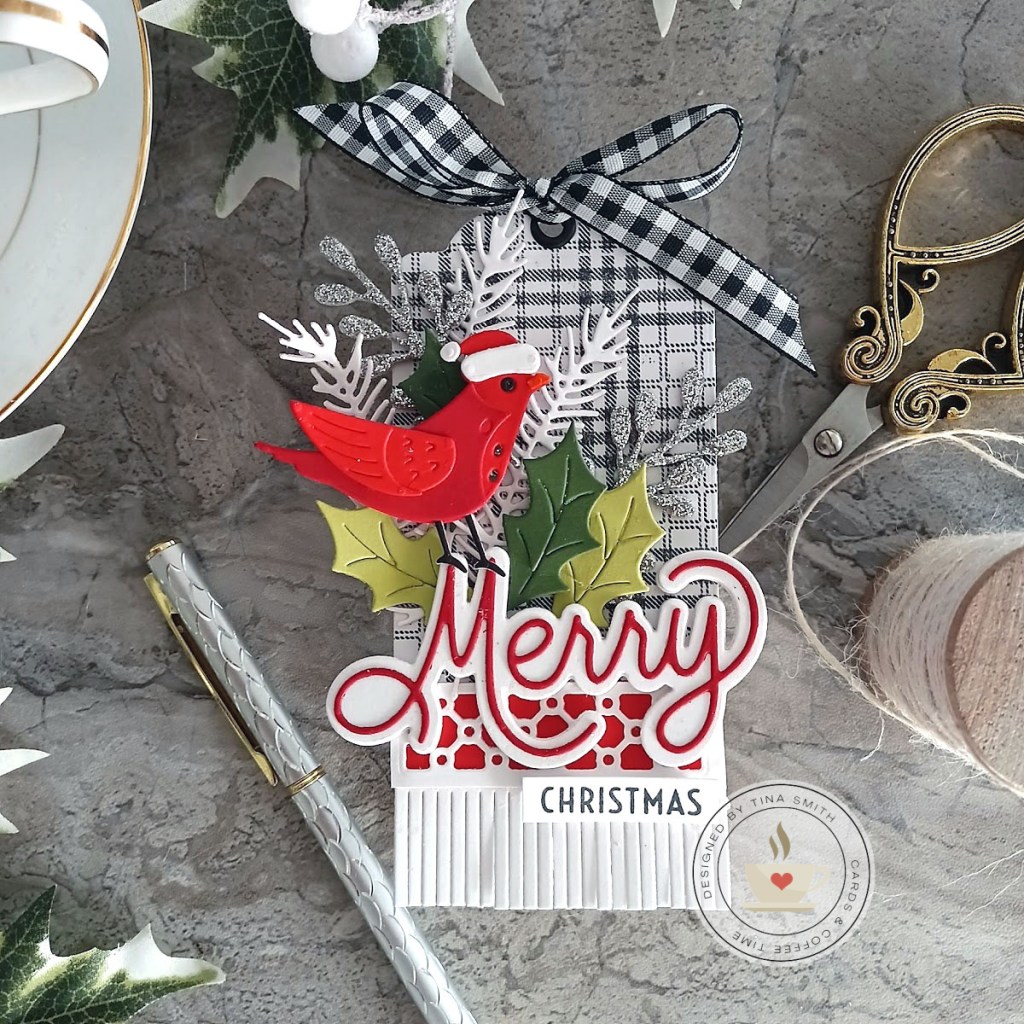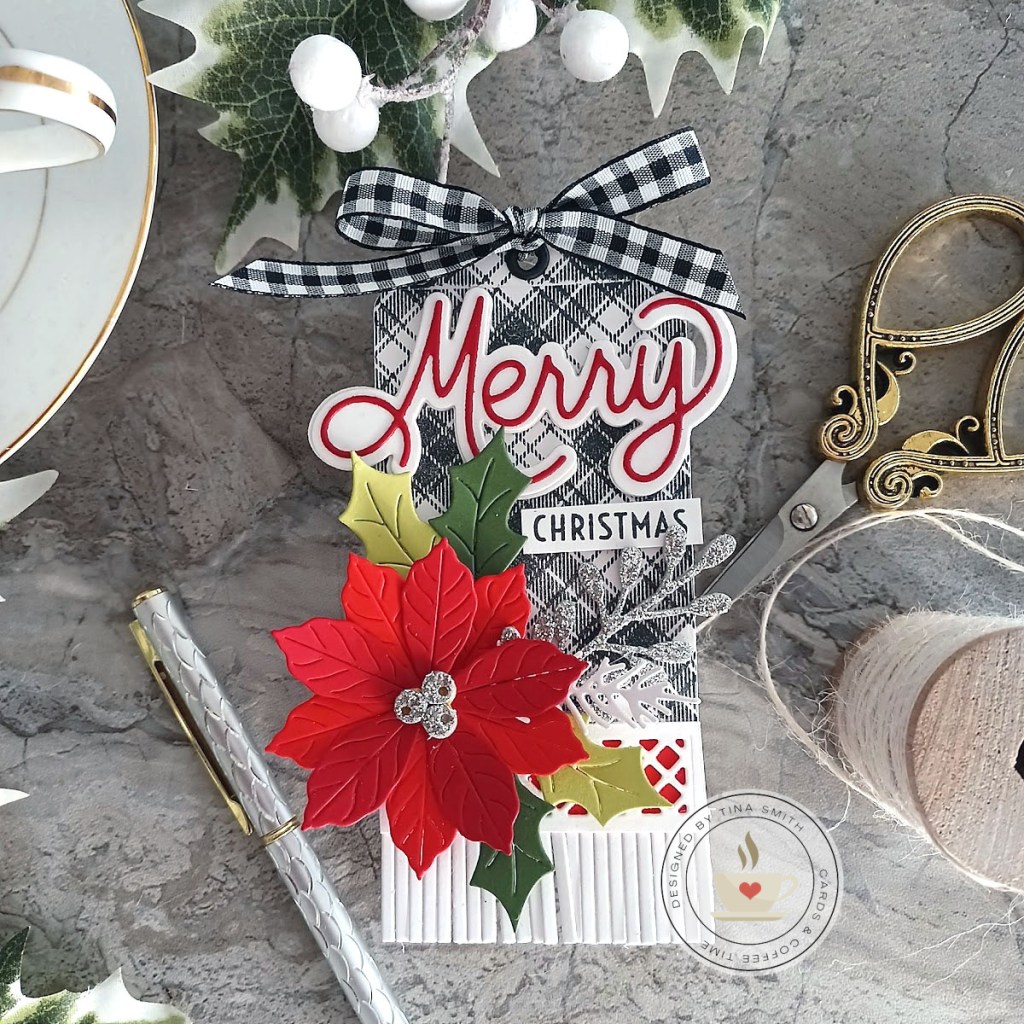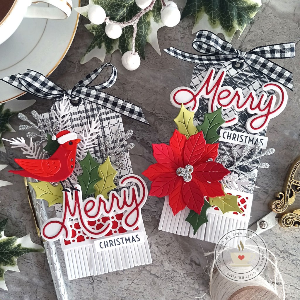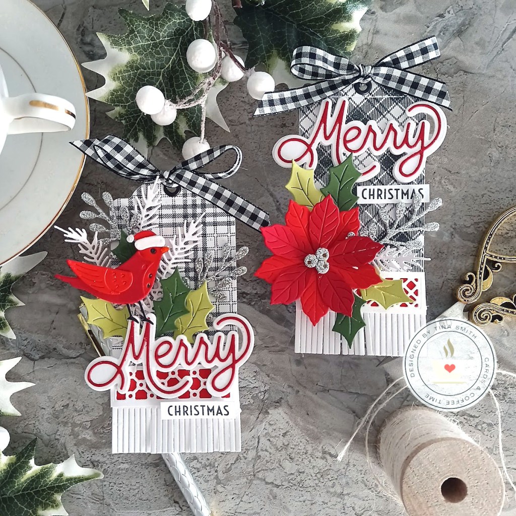 Two Fancy Tags with the Spellbinders Christmas Bird Poinsettia & Classic Merry Christmas!