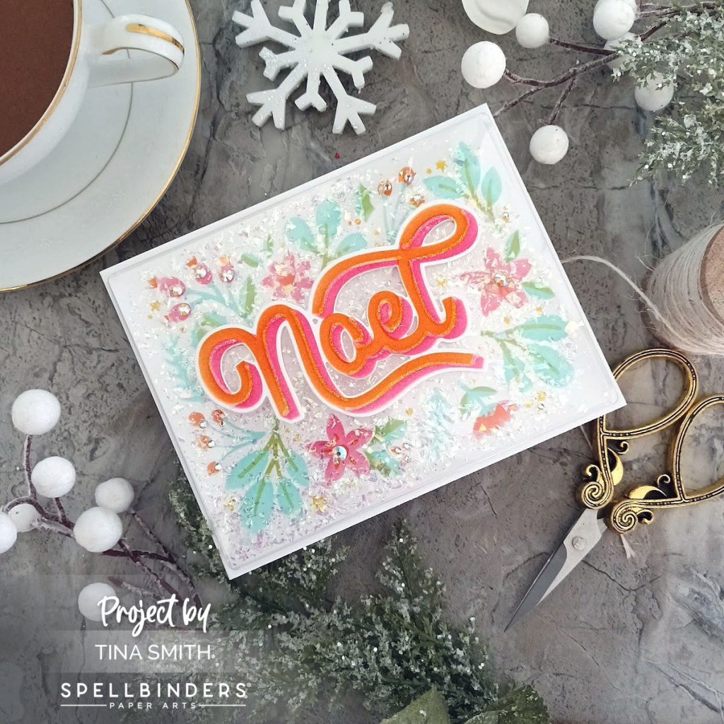 An Icy Christmas Card with the Spellbinders Layered Noel Foliage Stencil & Die Set!