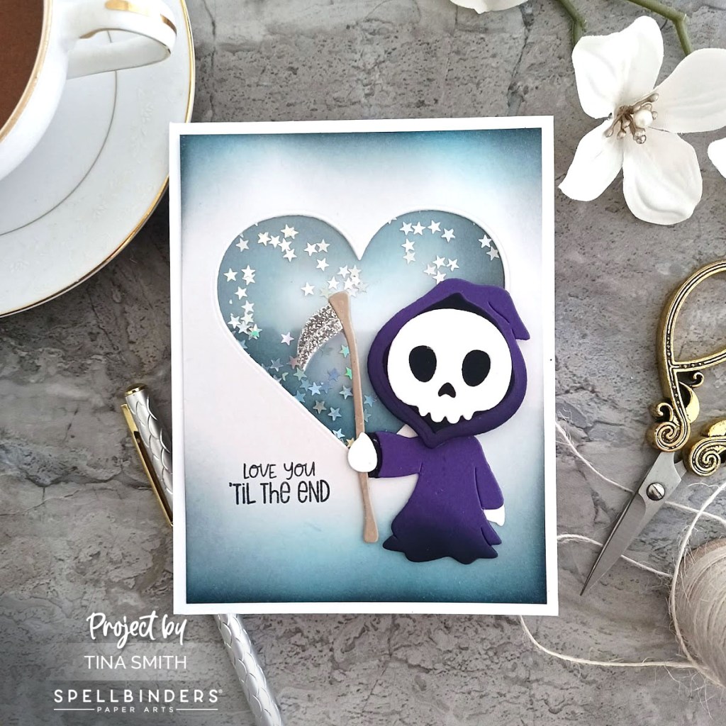 Hello Crafty Friends! Today for Try It Out Tuesday we are shakin’ & dancin’! My card features a few items from the Spellbinders Dancin’ Halloween Collection. The Dancin’ Grim & Dancin’ Halloween Sentiments Stamp Set is Halloween cutsie as I like to say. Check out more from this collection over at the Spellbinders Shop. Watch the step by step how-to tutorial down below. I love how this turned out and hope you do too:)