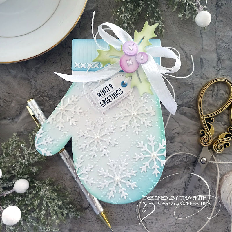 Cool down this summer with some wintery holiday hugs! Hello Crafty Friends, I am super excited to be joining Sunny Studio this month as a Guest Designer on their Blog celebrating their amazing Fall/Holiday Release:) Today I get the pleasure of creating with the Woolen Mittens Die set and the Holiday Hugs Stamp. I created a tag with a treat, a heartwarming A2 card, and a snowflake filled mitten shaped card.