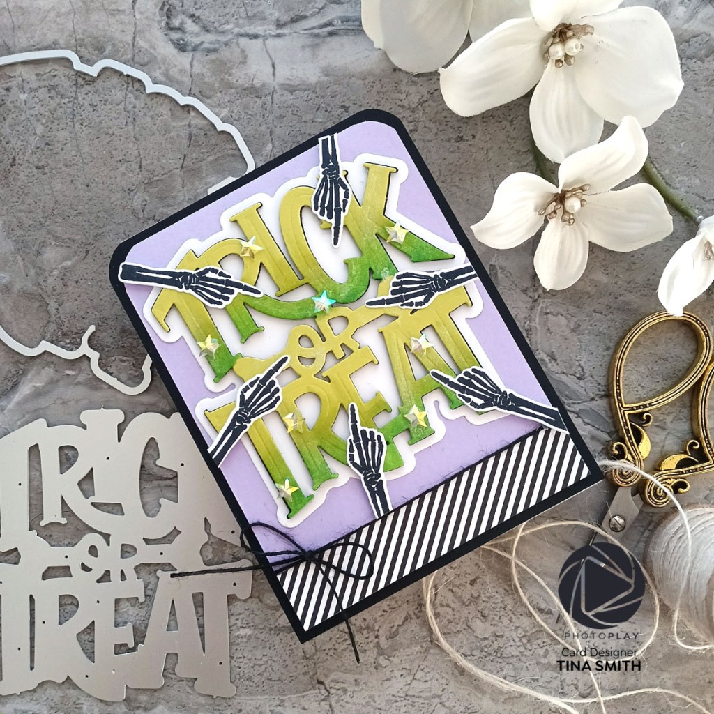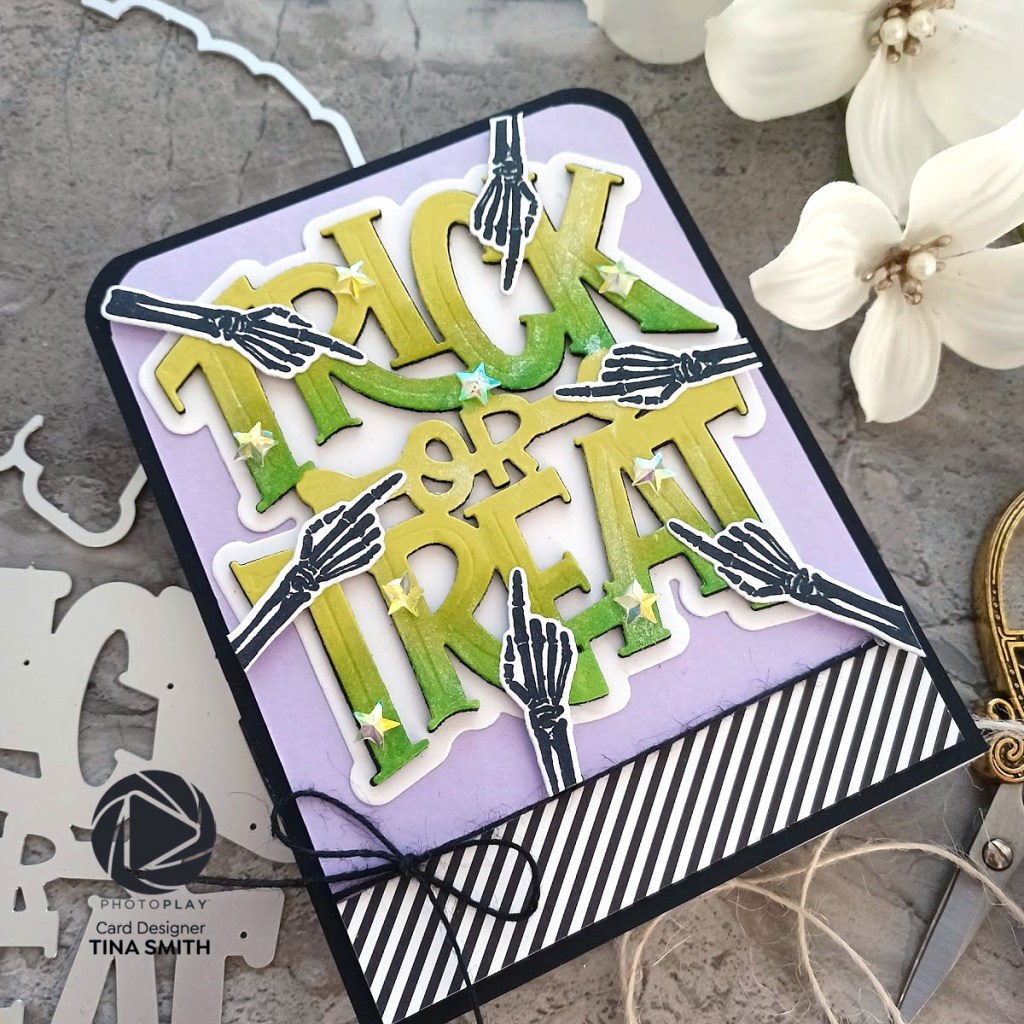 Hello crafty friends! UnBOOlievably fun times ahead with this Trick or Treat card! Get ready to spook and surprise your loved ones with a little Halloween magic that is not so scary! This card is the perfect way to spread some eerie cheer! Today we are using the @PhotoplayPaper Say it with Stamps Trick or Treat Die Set, the Trick or Treat Clear Stamp set & Coordinating Die from the Photoplay Paper Trick or Treat Collection! Adding some color to your XL Greeting Dies for dimension is super easy. Check out the How-To video below. I hope you like my project!
