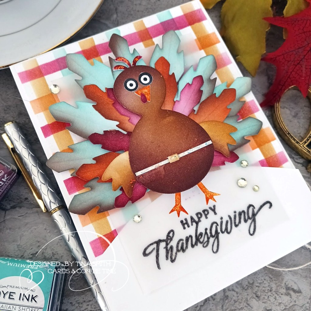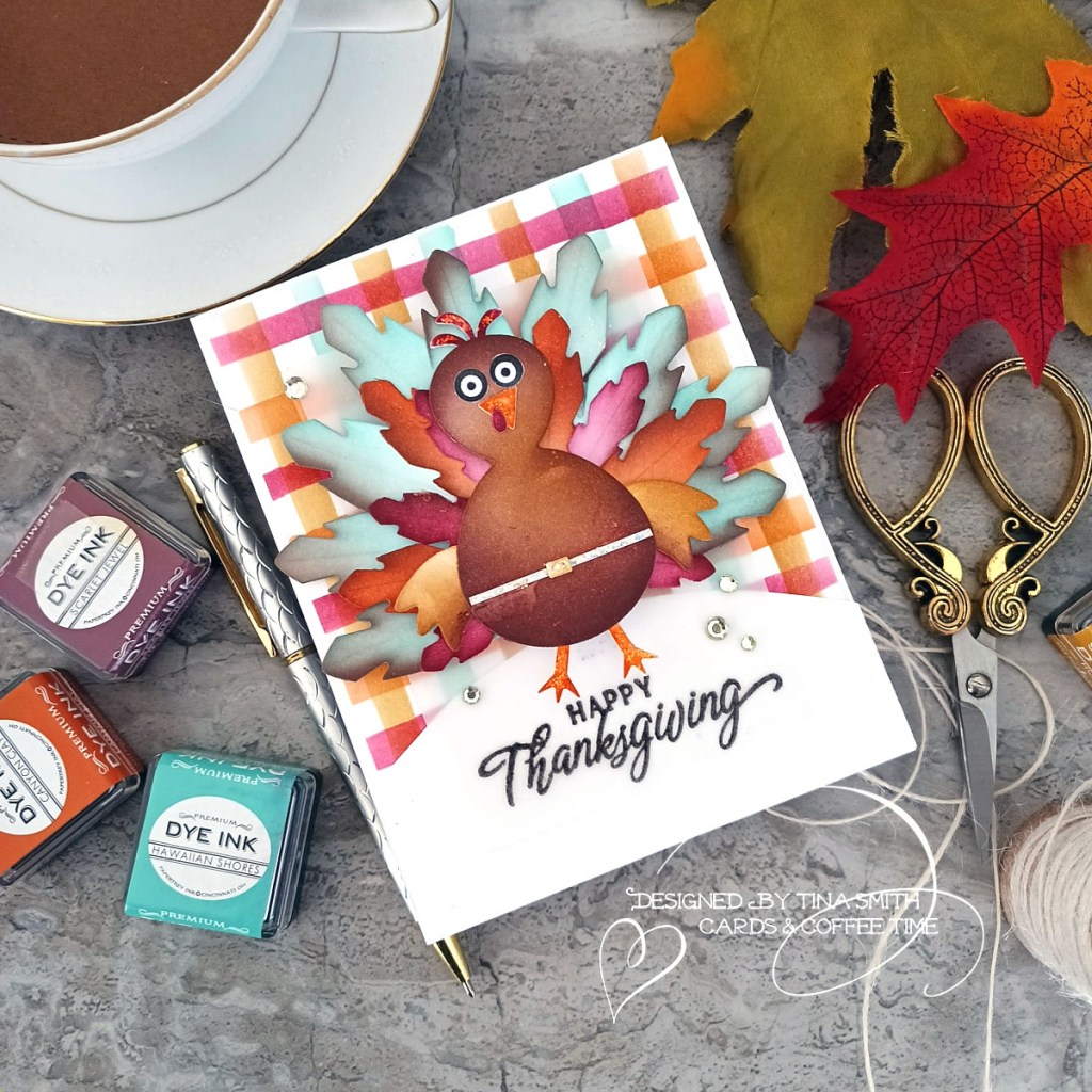 Hello crafty friends! Gobble! Gobble! Who’s ready to embrace the cozy vibes of fall! My card today features the @PapertreyInk Build A Turkey Die Set, the Watercolor Plaid Stencil Collection and the Give Thanks Sentiments Stamp Set. I created my card by first creating an A2 card front with the Watercolor Plaid Stencil. I used Scarlet Jewell, Honey Nut, Canyon Clay and Hawaiian Shores inks. I diecut all my Build a Turkey images with white cardstock and ink blended the same colored I used for the background, adding Dark Chocolate to the edges and body for a vintage feel.