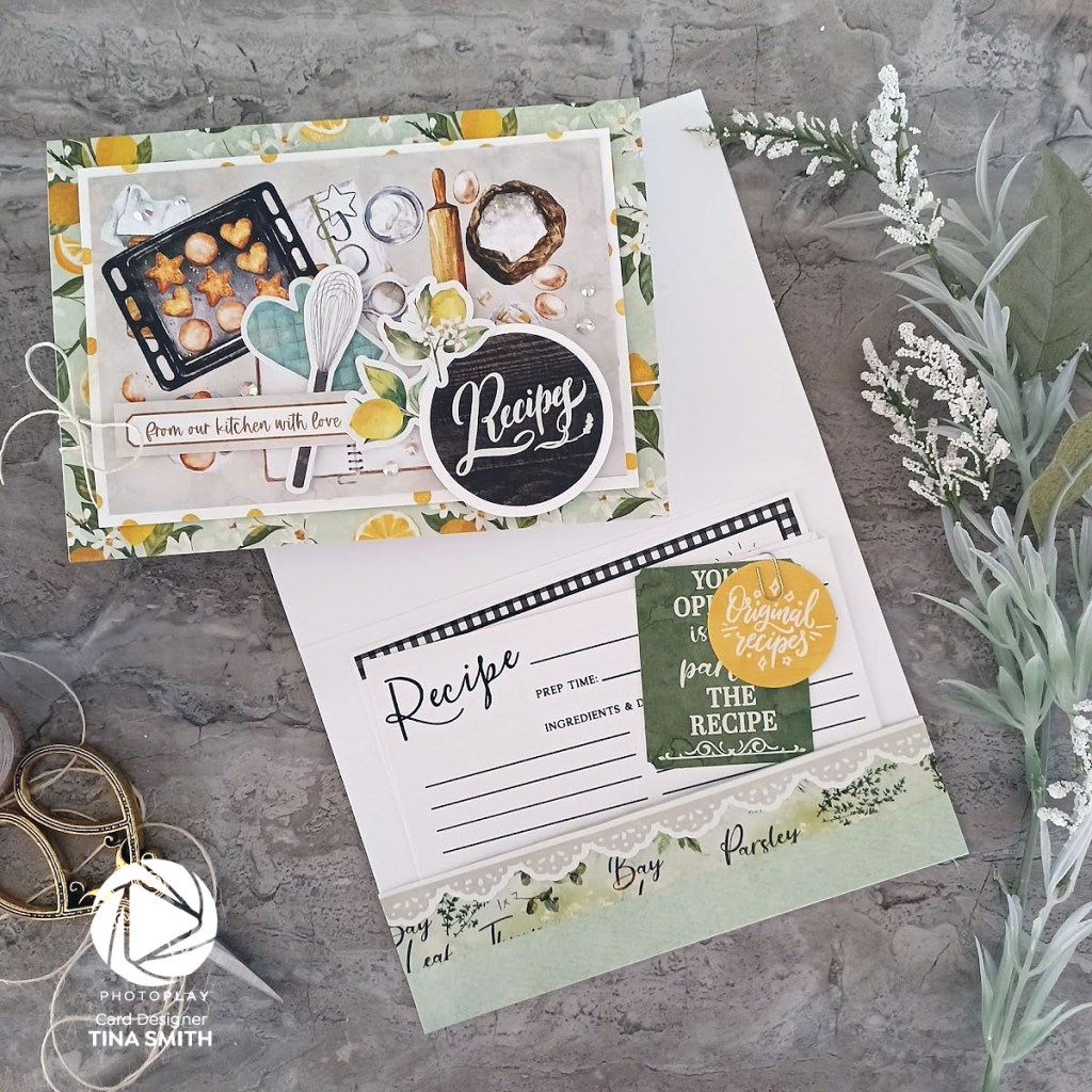 Hello crafty friends! Love creating unique and thoughtful handmade cards? Get creative with the new @PhotoPlayPaper Fresh Picked 2 Collection and make your own 5×7 cards with recipe inserts to add your most favorite recipes and room for a message too. A card with a gift inside is always nice! Today I used two of the cut-aparts, some patterned papers, stickers, the coordinating Fresh Picked 2 Ephemera Pack and the 12×12 Recipe Card Sheet to create my projects. Check out the How-To video below. I hope you like my projects!