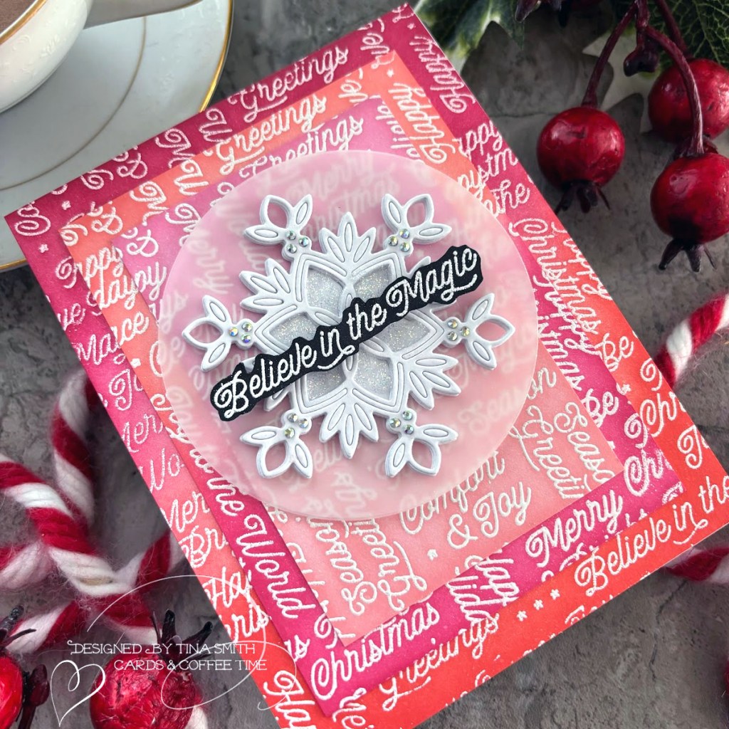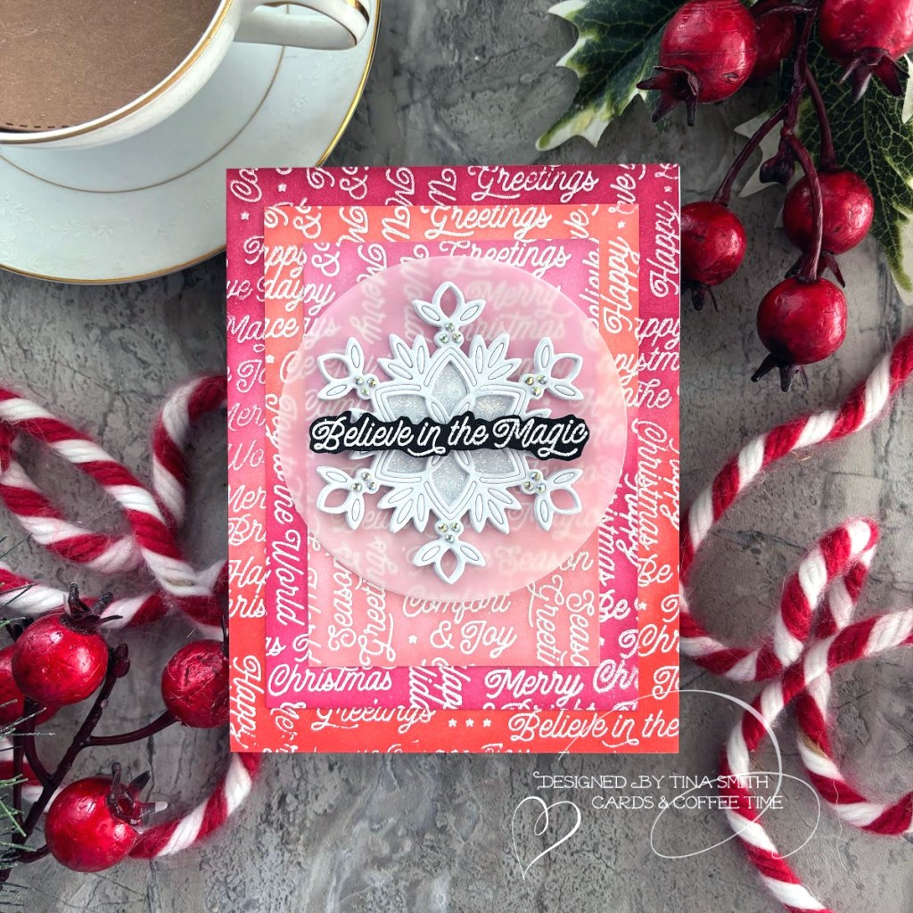 A Snowflake card with the Simon Says Stamp Christmas Words Background & New Mini Ink Cubes Sets!