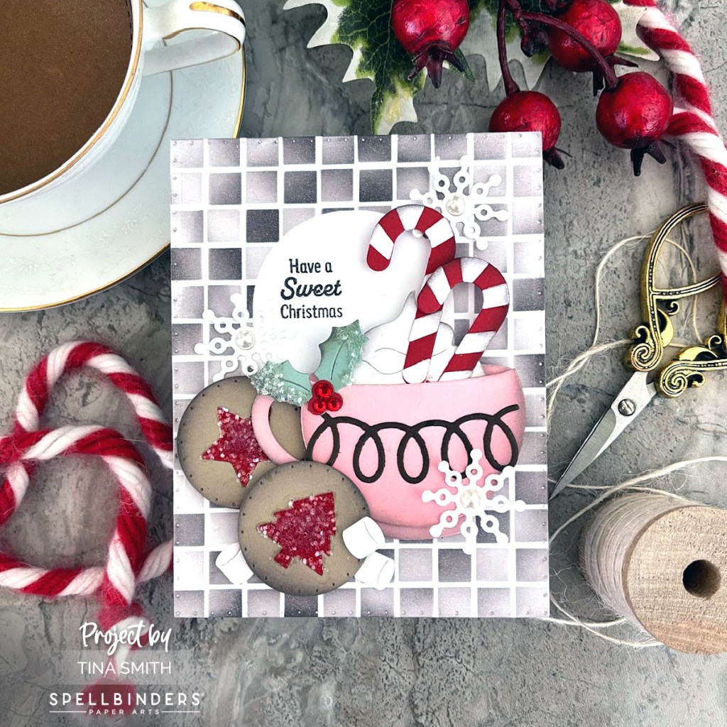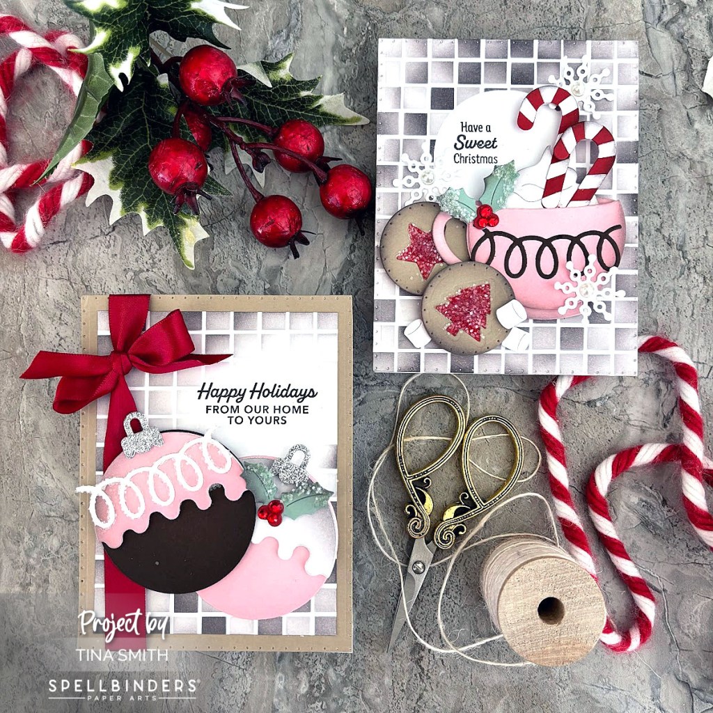 Hello Crafty Friends! Sweeten up your Christmas cardmaking & get ready to spread the holiday cheer featuring the Spellbinders Merry Mugs & Circle Delights Collection! Grab your hot cocoa or die cut it out or both and let’s start crafting some delicious cards! I am sharing two sweet Christmas Cards using a few new items from this super fun collection. We have the Merry Mug Creations Die Set, the Festive Ornaments & the Santa’s Sippin’ Sayings Clear Stamp. Check out more from this collection over at the Spellbinders Shop. I love how this turned out and hope you do too:) The Step by Step tutorial is below.