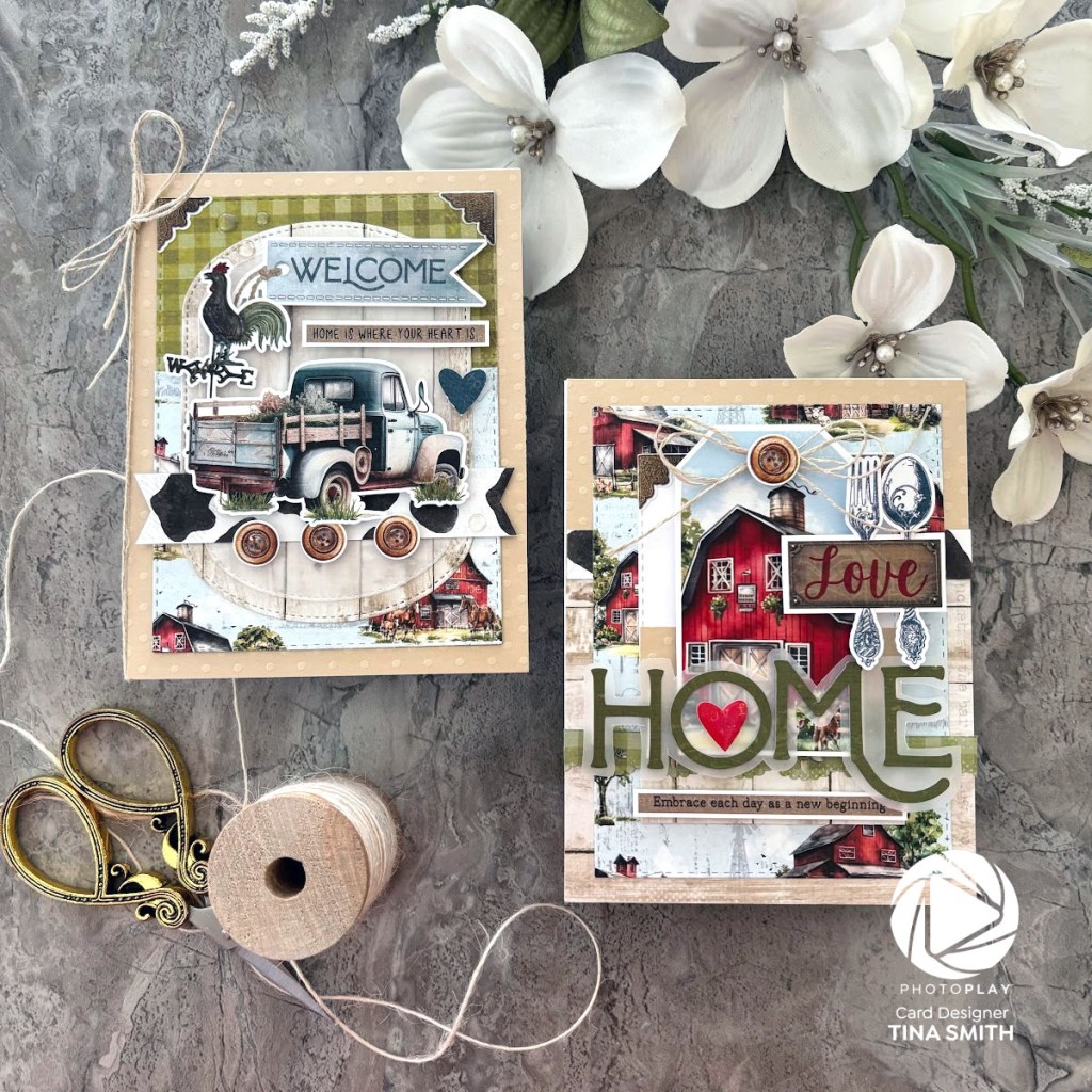 Hello crafty friends! Welcome to the Farm Life! Check out these country creations that capture the cozy “Home Sweet Home” feeling! 🐄The country flair of the Photoplay Paper Willow Creek Highlands Collection is just what you need to add some farm charm to your cards. Today I am creating 2 cards with lots of layered elements using patterned papers and stickers from this fun collection. Check out the How-To video below. I hope you like my projects!