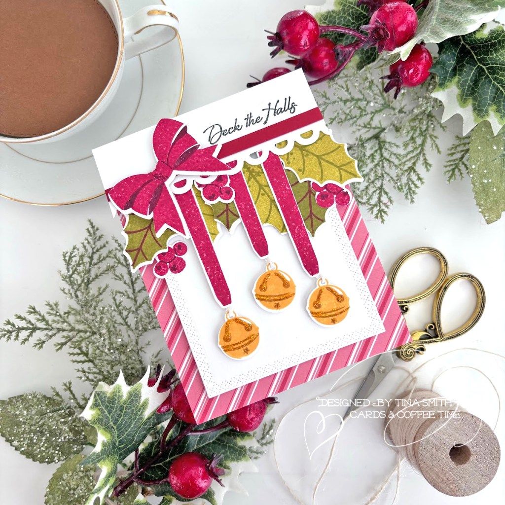 Hello crafty friends! I hope your day is going fabulous! Decking the Halls…no…our handmade cards with bows of holly! with the @Papertrey Ink Hear the Bells Stamp set. The craft room just got a whole lot merrier! Check out the @PapertreyInk stunning Hear the Bells Stamp set, part of the Fabulous November 2023 Release, super easy to layer! Check out the Papertrey Ink Shop and the latest Release Here! I started my project by die cutting the holly, bells and ribbon from the Hear the bells die set with white cardstock. I used traditional colors to stamp my images on them, the colors are listed below.