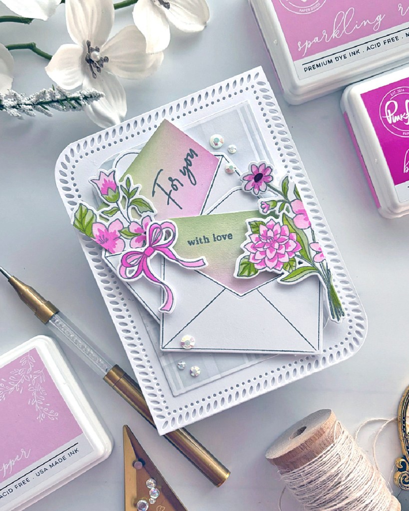 Hello Crafty Friends! I am super excited to be part of the Pinkfresh Studio 2024 January Challenge, This month is basically…anything goes! A Year in Review. The project I created today features the pretty Floral Envelope Stamp, Floral Envelope Die Set and Coordinating Floral Envelope Stencil set. February will be here before we know it, I thought of pink. The greeting could be used for just about anyone on Valentines day too:) Watch the How-To tutorial down below to see how I created it, I hope you get a chance to check out more inspiration over on the Pinkfresh Studio Blog!