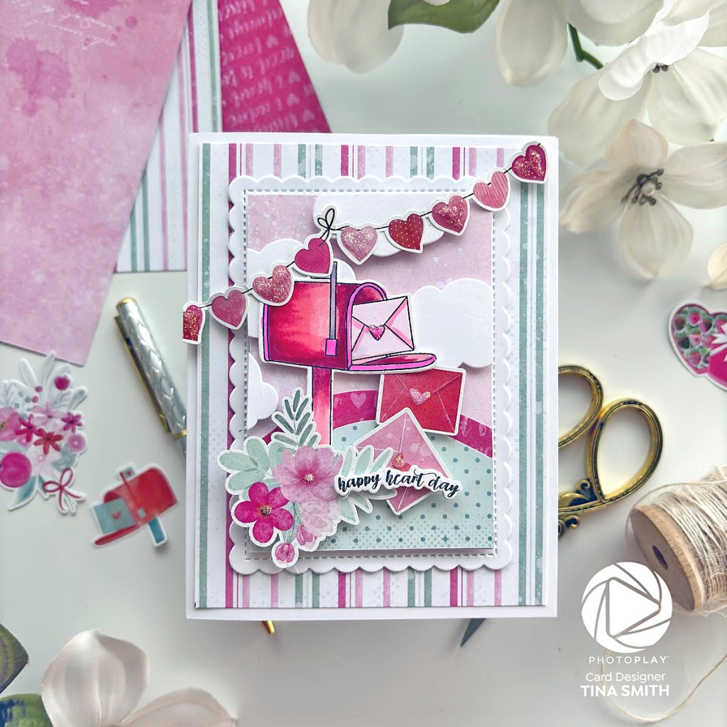 Hello crafty friends! Spread the love this Valentine’s Day with handmade cards filled with love, crafted with affection and adorned with heartfelt love letters fashioned from the exquisite PhotoPlay Paper 12×12 Smitten Collection. Today I am creating 2 cards with lots of layered elements using patterned papers & element stickers from this love filled collection and the coordinating Smitten Stamp & Die set. Check out the How-To video below. I hope you like my projects!
