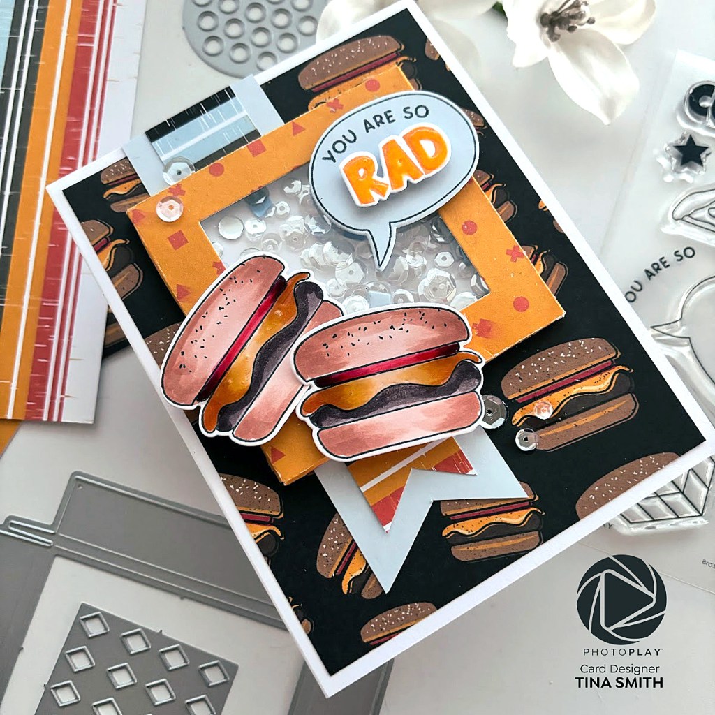 Hello crafty friends! I hope you are having a fabulous day! 🍔 Who’s ready to shake up their burger game? We are creating a delicious food card today and having fun! Introducing the mouthwatering burger shaker card, made possible with the incredible new Say It With Stamps Shaker Die from PhotoPlay Paper.