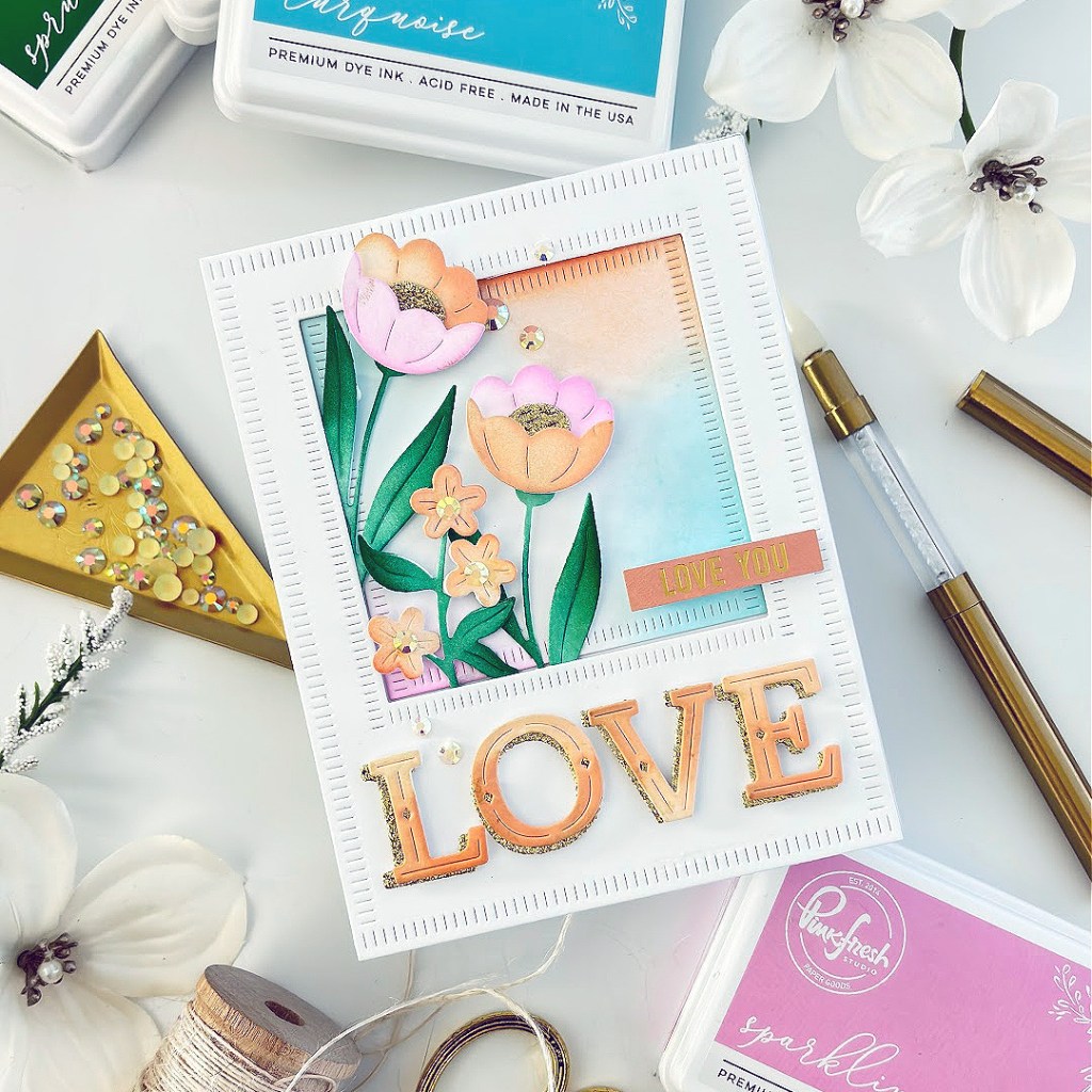 Hello Crafty Friends! I am super excited to be part of the Pinkfresh Studio 2024 February Challenge, This month is all about love! The project I created today features the pretty Sweet Blossoms Die Set, the Coordinating Stencil set and the Julieta Alpha Die Set. March will be here before we know it, I thought of Spring flowers in popping up. The custom greeting I created could be used for any occasion:) More details on how I created it are down below, I hope you get a chance to check out more inspiration over on the Pinkfresh Studio Blog!