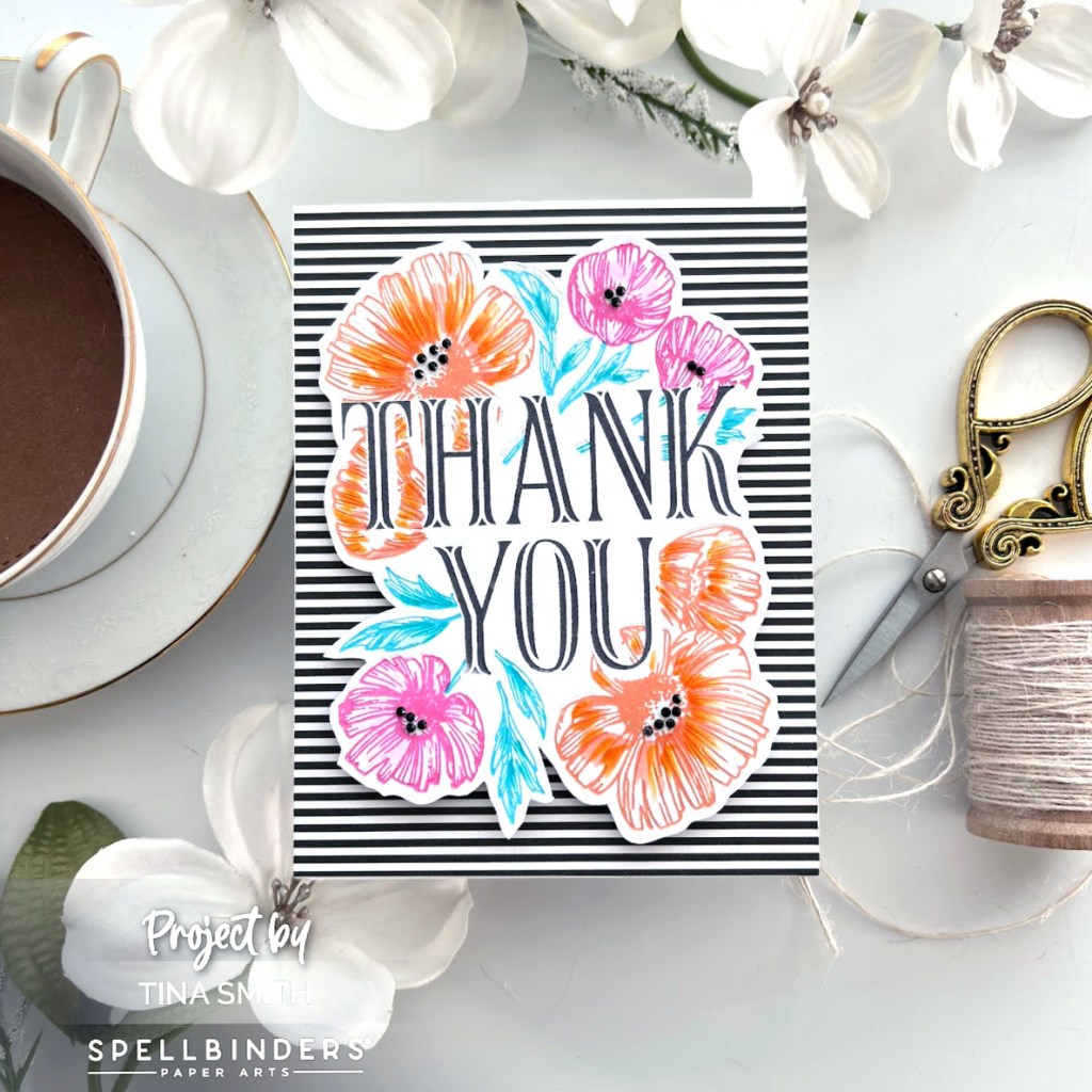 Hello Crafty Friends! I hope you day is going terrific! Today I am blooming with gratitude! This Try It Out Tuesday I created a floral design, paired with the new Spellbinders Thank You Blooms Registration Press Plates. Spread joy by sending this heartfelt thank you card to someone deserving. Check out more from this collection over at the Spellbinders Shop. I love how this turned out and hope you do too:) The Step by Step tutorial is below.