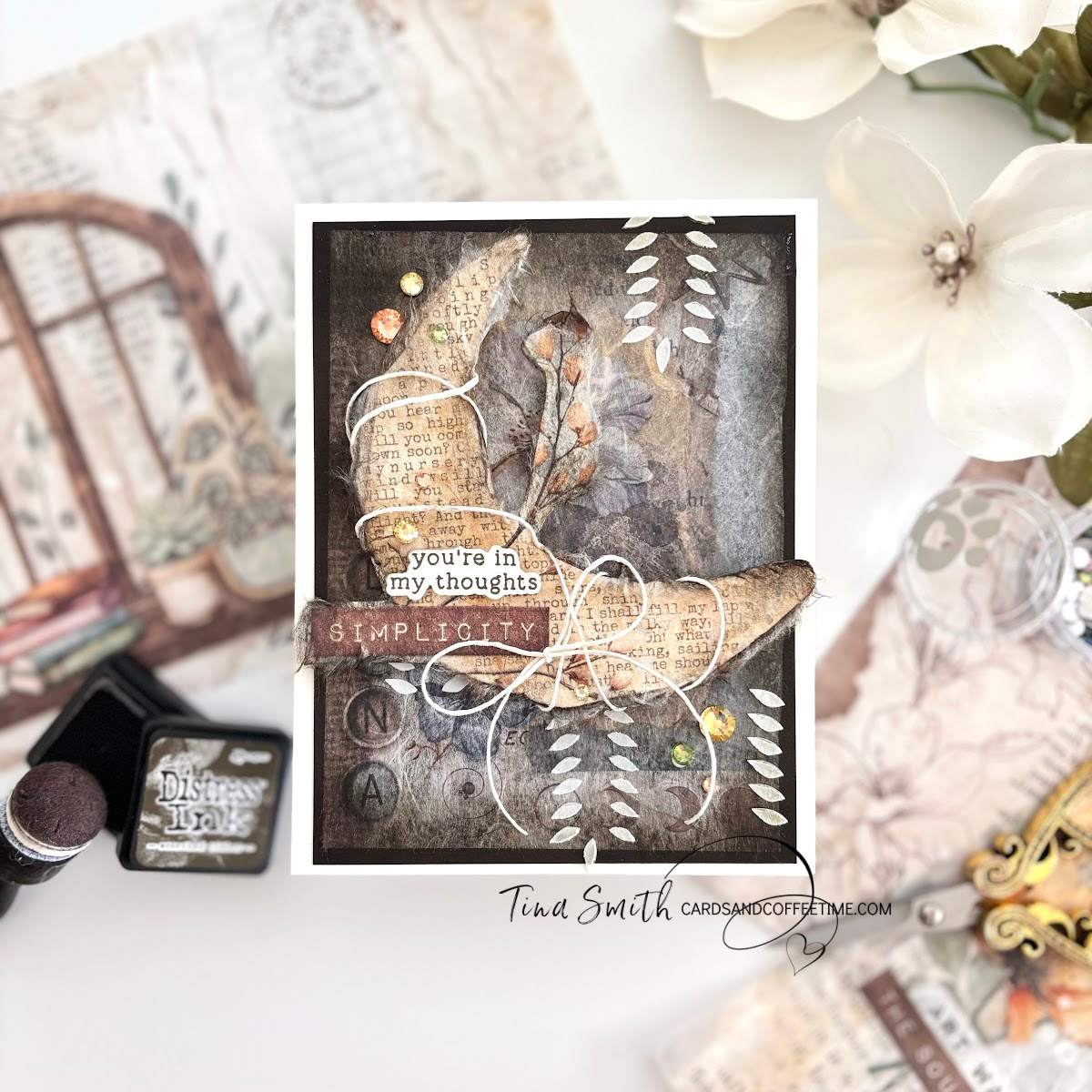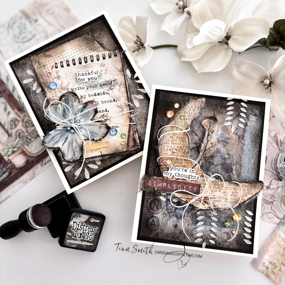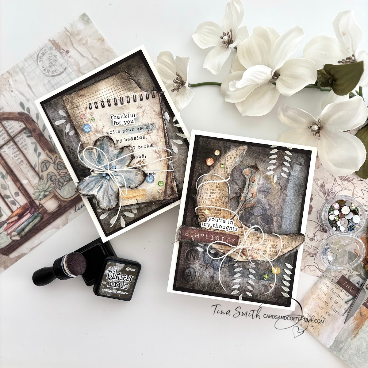 If you can handle tearing and gluing these cards were made for you. Plus, the Tiny Blending Tools paired with the Distress Ink make blending the edges a breeze. And let’s not forget the Two-Step Simple Leaves Stencil in the kit, which was just the right touch to add texture to the background. I used texture paste, although using Simon’s White Pigment Ink will give the same look. I’m absolutely smitten with how these turned out, and I hope you’ll love them too!