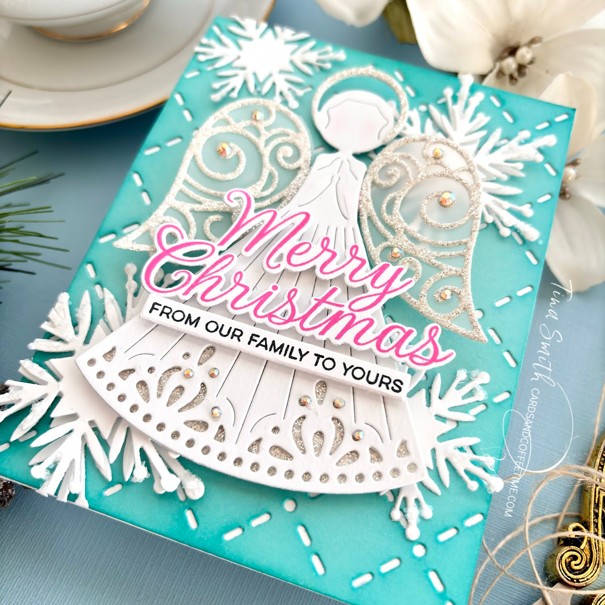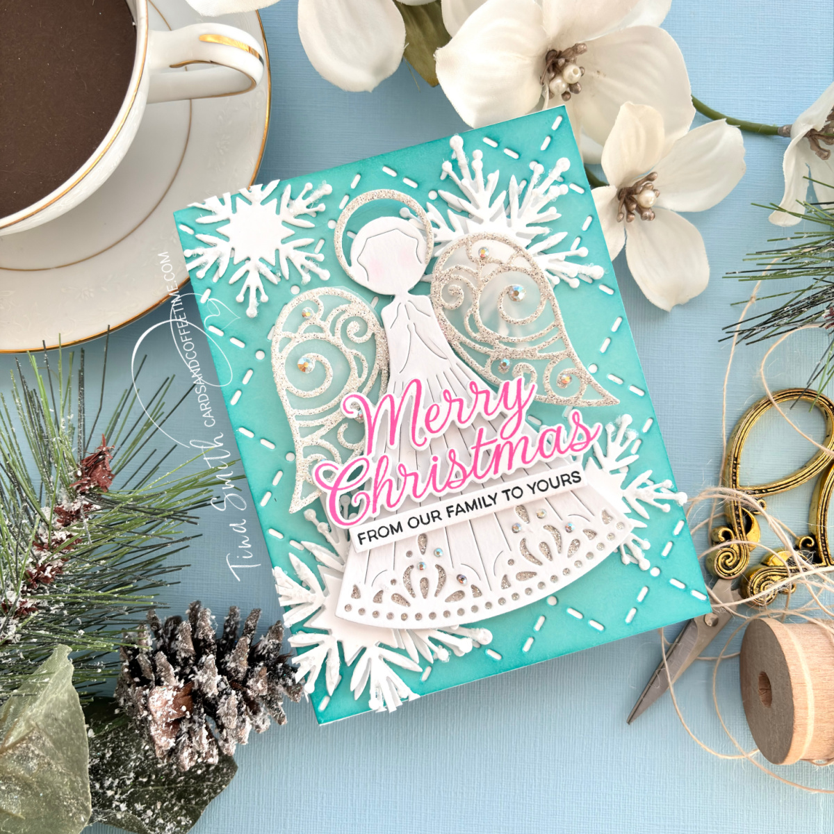 DIES: This is Big Sentiments: Merry Christmas, Build-an-Angel Die, Layered Snowflakes: Drift Die Set, Cover Plate: Cross Stitched Die