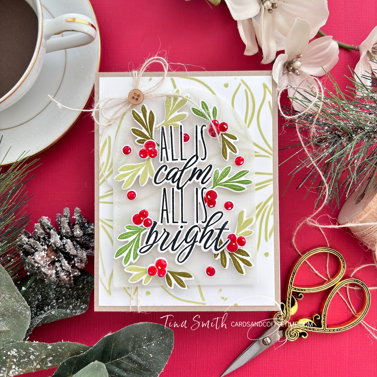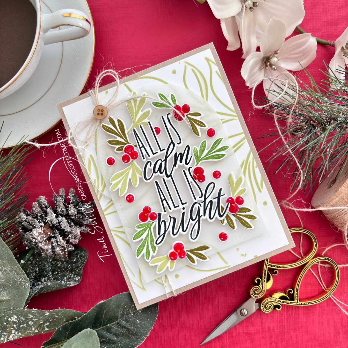 I used the stencil set from the Elegant Notes Stationary Set for my background and layered it on an A2 panel of Kraft cardstock. I placed the largest Arch from the Love to Layer Arches Die Set in the center. I stamped my greeting with true black ink and sprinkled the Christmas foliage in the stamp set all around the greeting. I used Natural twine and a button for some texture too. Don’t forget to drop by the Papertrey Ink Shop and check out the latest Release! The process video is down below or JUST CLICK HERE🙂