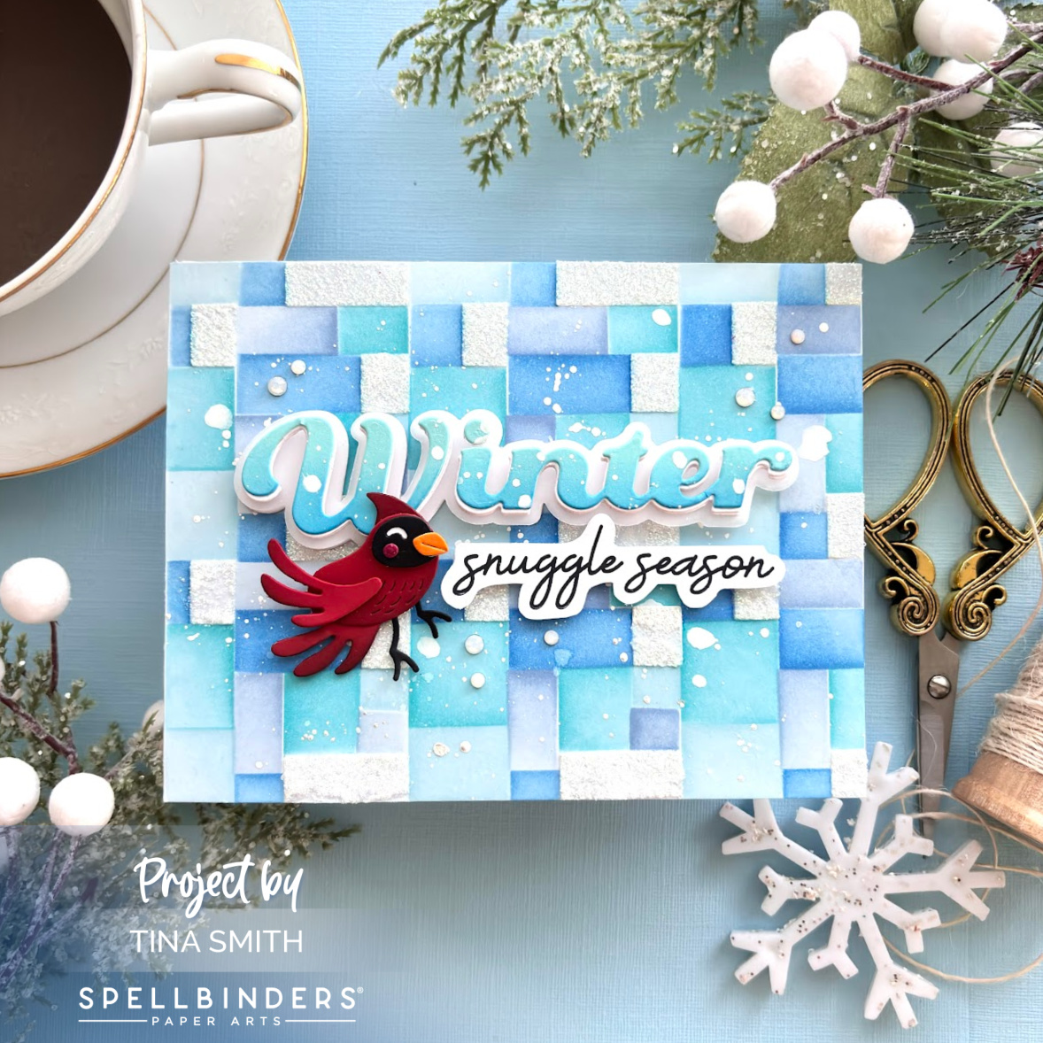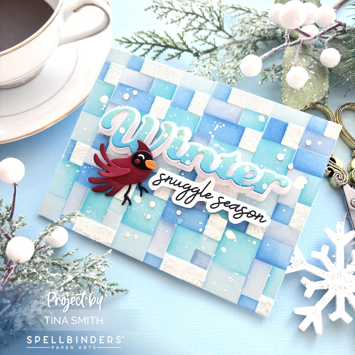 Beautiful card! I love the inclusion of glitter paste in the background. The little bird is adorable, and the coloring on the winter diecut is perfectly coordinated.