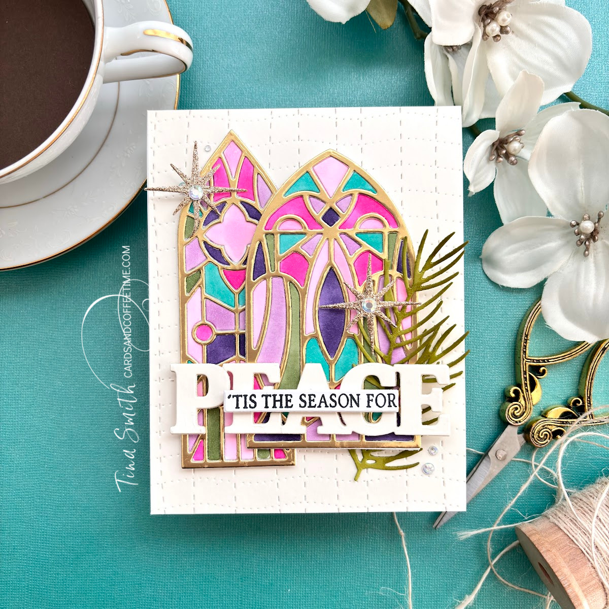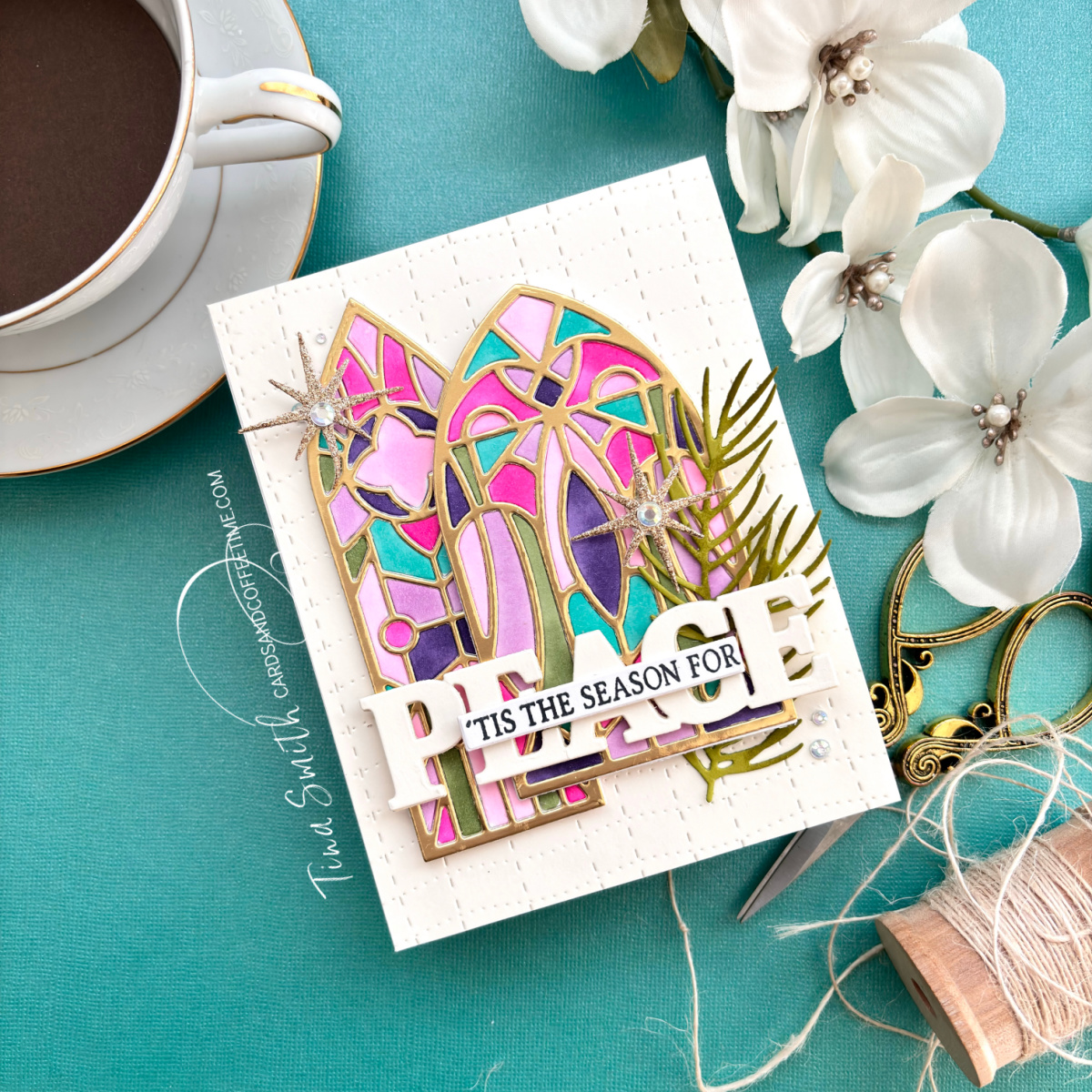 Hope your day is going fabulously! I’ve got another Christmas card to share that’s perfect for the festive Christmas Season. The Papertrey Ink Stained Glass Window Die set is such a showstopper and yet it is super easy to make without having to inlay those bits and pieces. I used a fancy technique that I call messy coloring. lol!