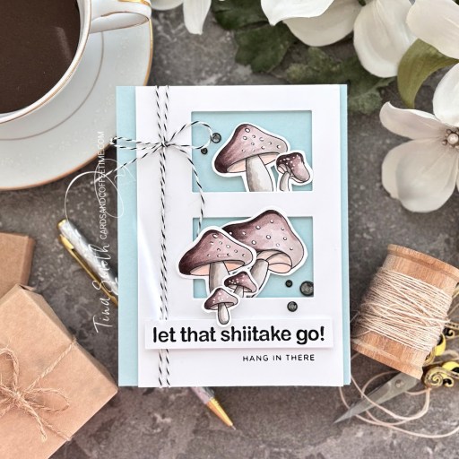 Sharing a punny card that will make you laugh. The Oh, Shiitake Clear stamp from Simon Says Stamp is new and part of the “To Love” Release. For those of us that don’t curse, this is a playful pun on that or if you just like shiitake mushrooms this set is for you too, lol:) My project today is a simple layout with a little bit of copic coloring. Enjoy!