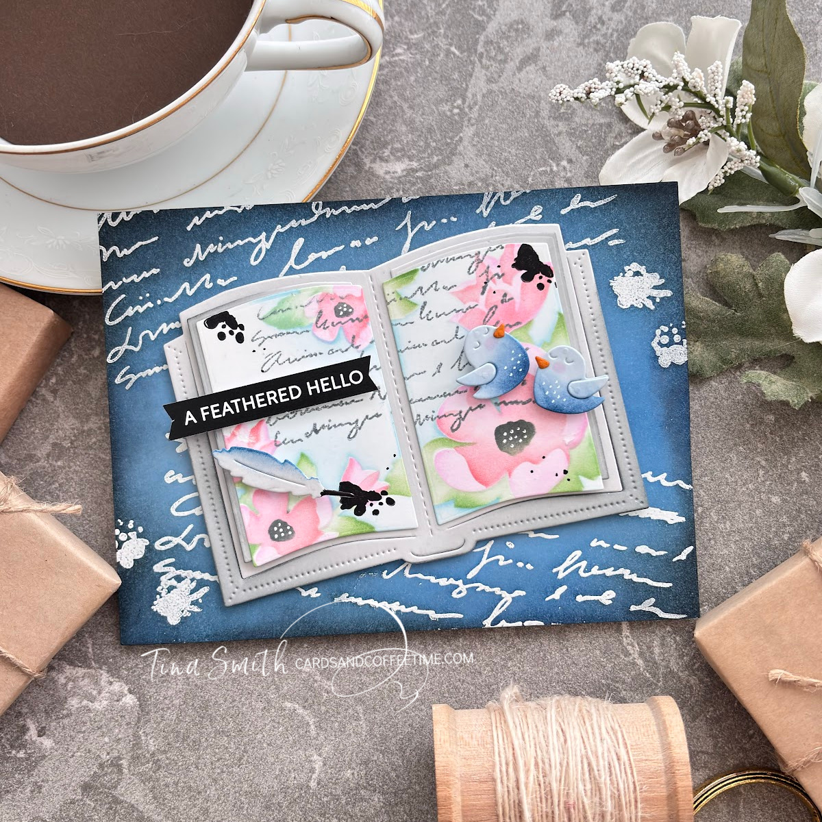 Sharing a Hello Card with the Waffle Flower Open Book Die Set and a few other new items from the Far Far Away Release. We are stenciling and ink blending beautiful book pages and scripty backgrounds, crafting a stunning visual story that captures the imagination. Each layer of color and texture enhances the overall aesthetic, bringing to life the vision of a book anyone would love to read! The intricacy of the designs truly showcases the versatility of the die set, making every card you make with it, unique and special.