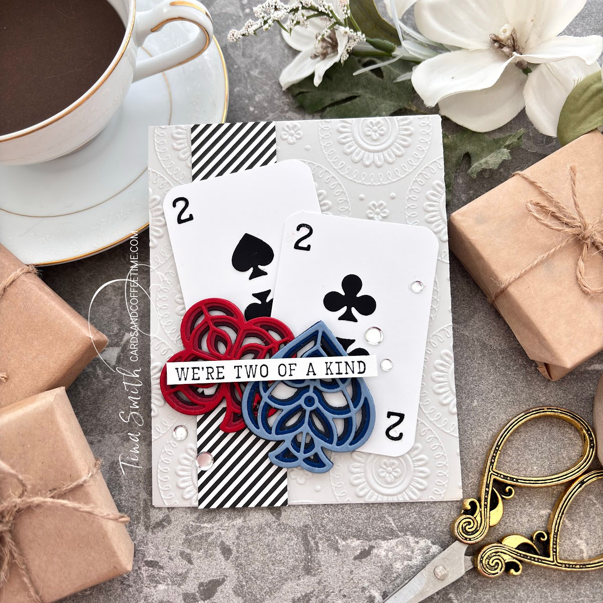 Calling all card players and cardmakers! Today, we are creating a Two of a Kind card in 5 easy steps complete with spades and clubs. Cards like this are great for cardmakers who are just beginning the journey and for seasoned crafters. We are using a few items from a fabulous new collection at Spellbinders called Jack of all Trades created by the talented Jaycee Gaspar! Enjoy the tutorial:)