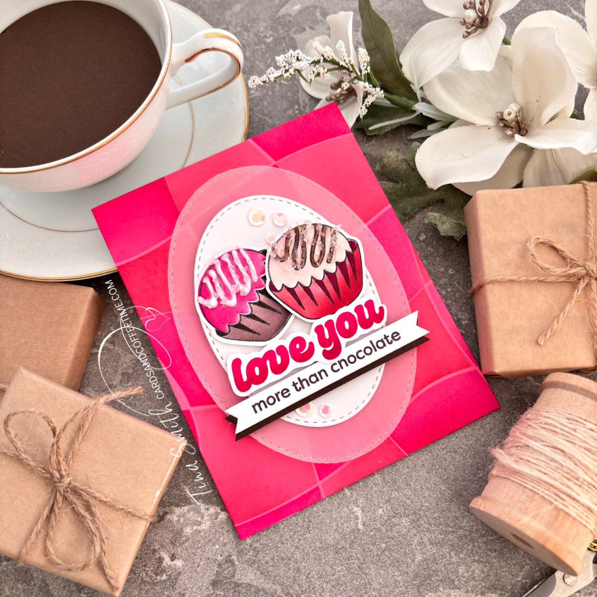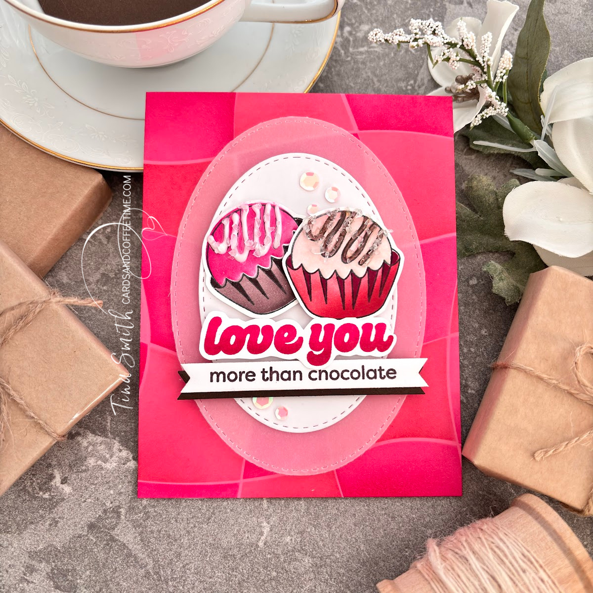 So grab a cup of coffee, gather your supplies and let’s get crafty! Thanks so much for stopping by, wishing you a day filled with crafty supplies, love, laughter and smiles! Sending crafty hugs, Tina. 💌