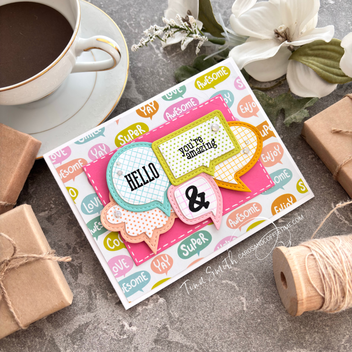 Today we’re whipping up a super cute Hello card in just 5 easy steps! We’re using some speech bubbles, cool patterned papers, and a fun stamp set from the latest Spellbinders collection by Kelly Bangs called Just Sayin’โit’s a fun and playful collection! Enjoy the tutorial ๐