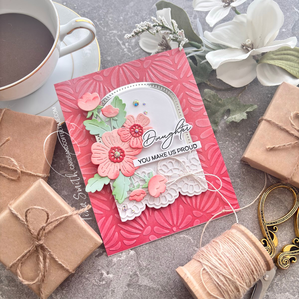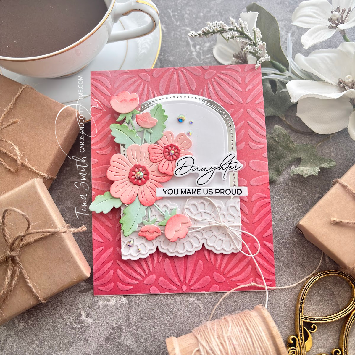 So grab a cup of coffee, gather your supplies and let’s get crafty! Thanks so much for stopping by,  wishing you a day filled with crafty supplies, love, laughter and smiles! Sending crafty hugs, Tina. 💌
