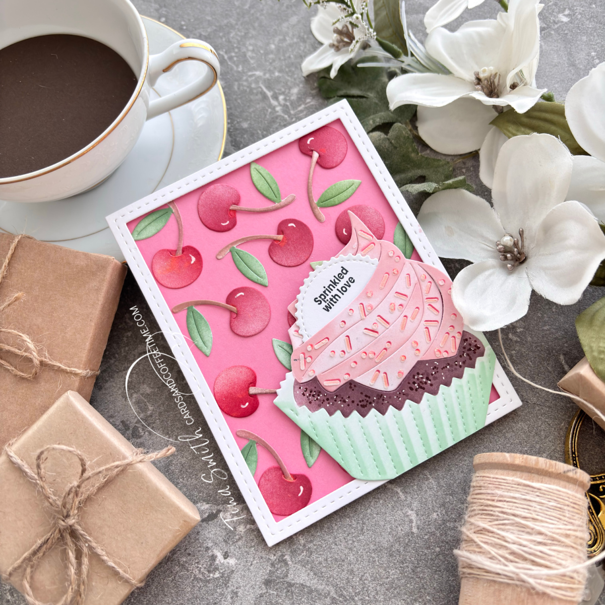 I hope you are having a lovely day, thanks so much for visiting my blog. Today we are creating a sweet card using the Waffle Flower Sweet Cupcake Die and Coordinating Stencil Set. Both are part of the new Waffle Flower Hey Cupcake Release, check it out it is super yummy! The stencil makes the cherries and cupcake super easy to color. I hope you enjoy my project.