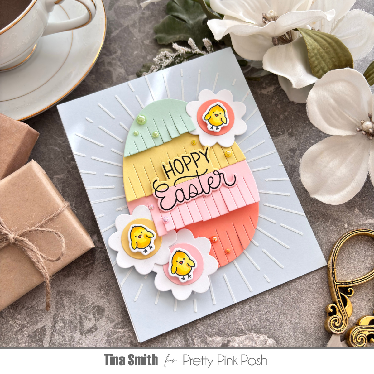 I hope you are having a fantastic day! I’m excited to dive into the Pretty Pink Posh March Release and create a delightful Easter Card featuring some of the wonderful new items in it. Who doesn’t adore fringe? I absolutely do, especially with the fabulous Fringe Egg Die set! It’s a breeze to use and adds such a cheerful touch to your card! I’m thrilled with how it turned out and I hope you love it too!