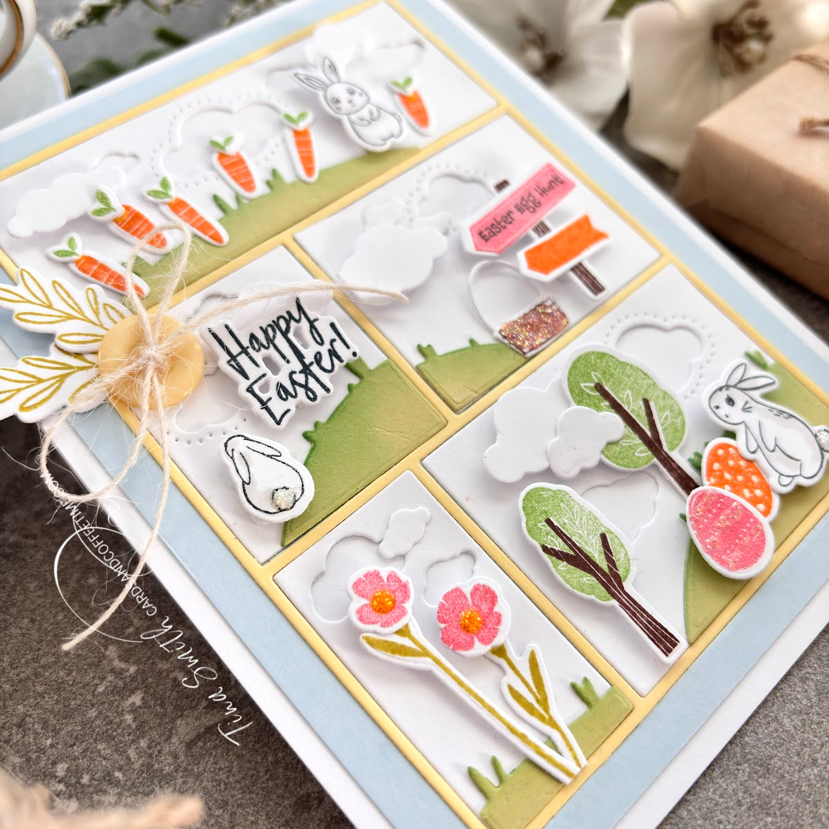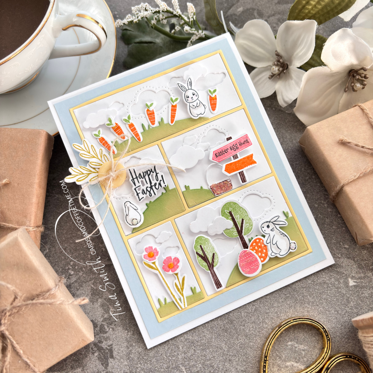 I’m absolutely thrilled to share with you an Easter card with 5 adorable little frames using the Papertrey Ink Eater In Frames Stamp Set and the coordinating die. These miniature scenes are sure to send smiles this Spring. Be sure to visit the Papertrey Ink Shop and discover the latest Release Here!