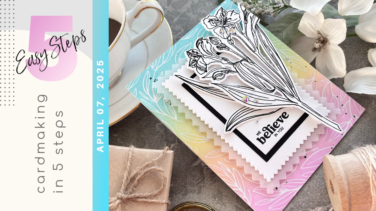 Today we are creating a simple card in 5 easy steps. We are using the Simon Hurley Heartfelt Blooms Stamp and Coordinating Die set at Spellbinders. I love the florals in black and white especially with a bright background! This set was perfect for that effect especially in an Encouragement card. I know the recipient of this card will smile! Enjoy the tutorial:)