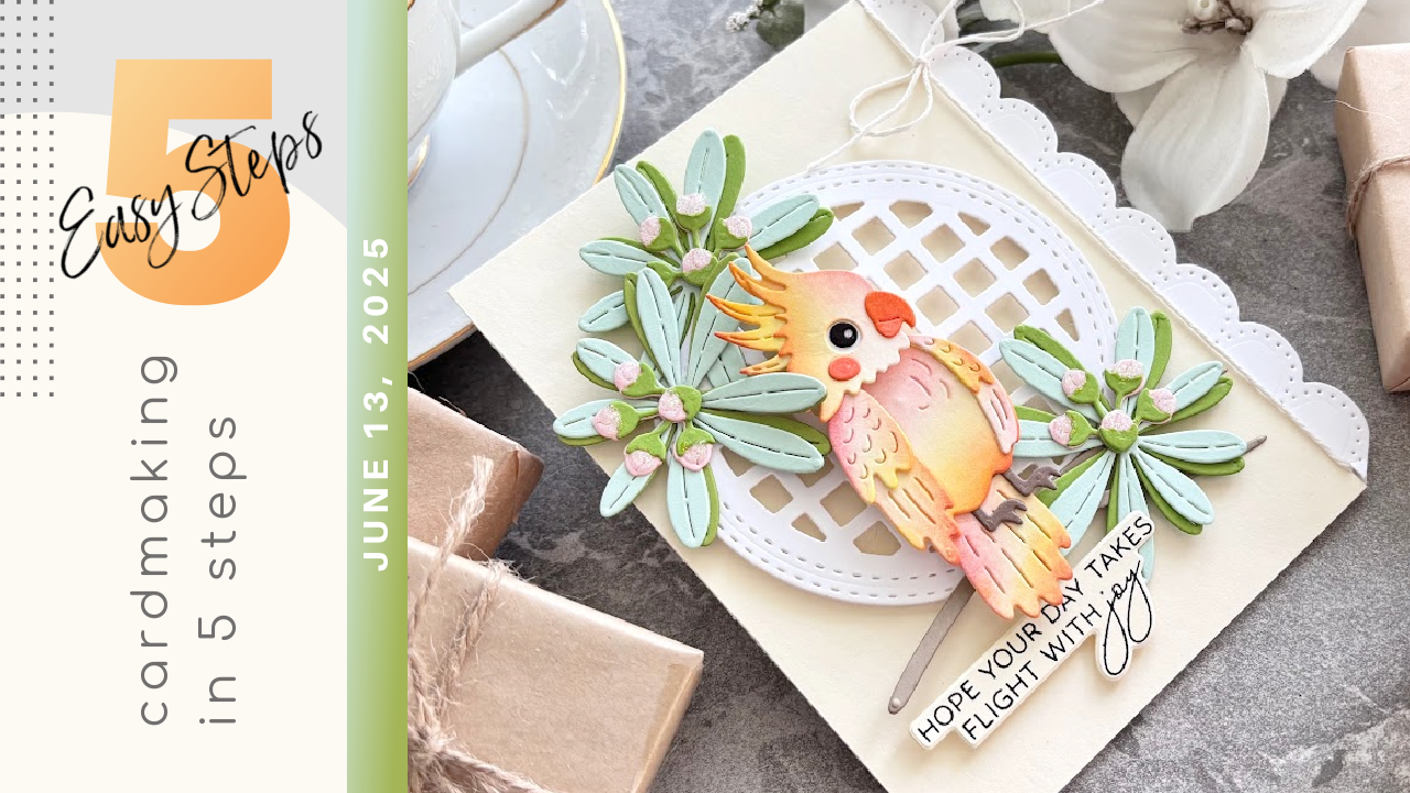 Today we are creating a Cheerful Chirps card in 5 Easy Steps. We are using the Spellbinders Flying High Etched Dies for an inspirational card! We are mix and matching supplies with older ones and new products that are so much fun. Enjoy the tutorial:)