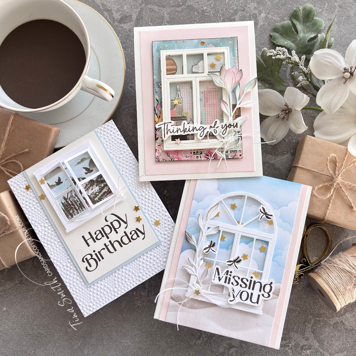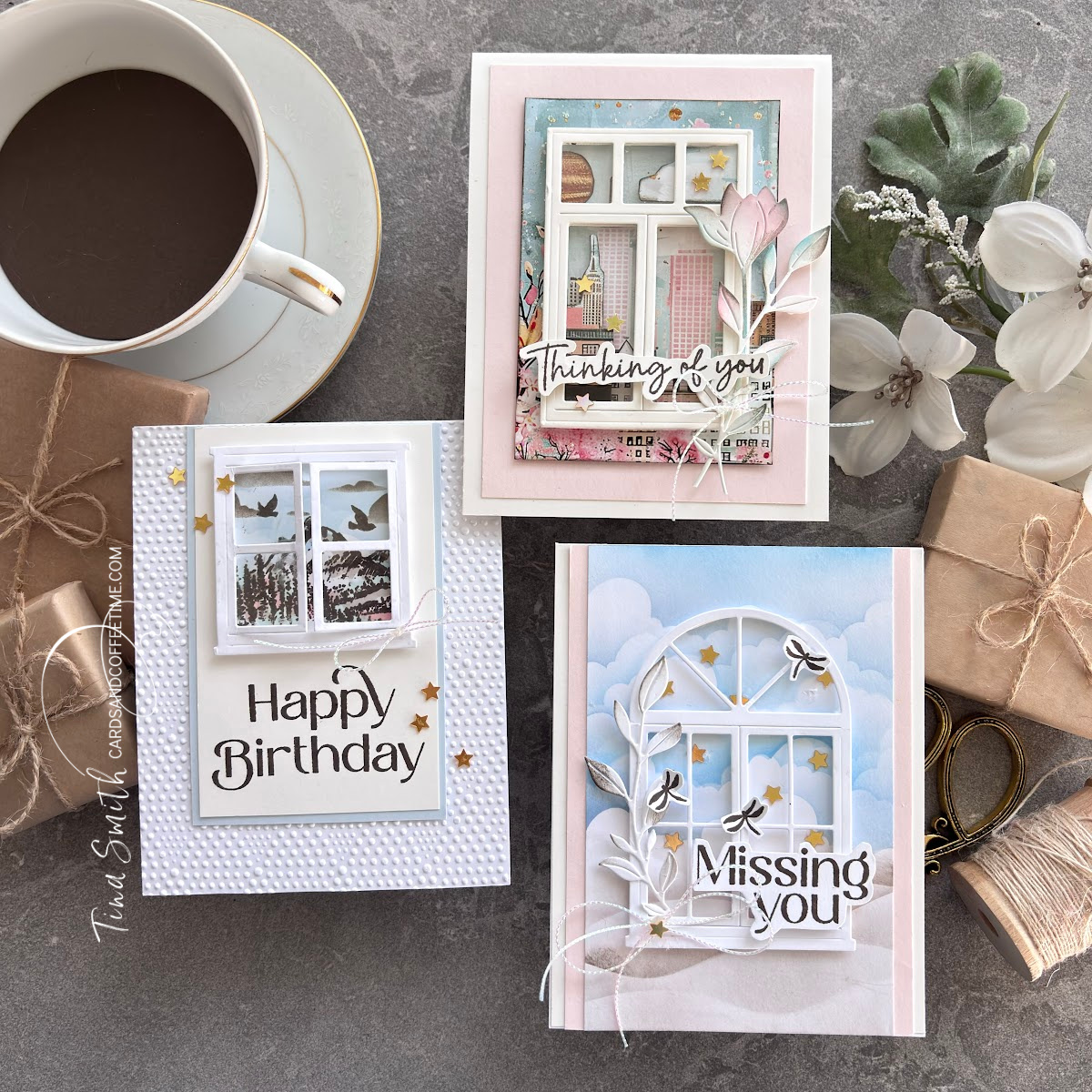 Check out this fab kit. It comes with a wonderful 6×8 Stamp, the amazing Window Trio die set, patterned papers, stencil, acetate, embellishment mix. There is also more! Be sure to watch the how-to video below to see exactly how I made these cards. Thanks so much for stopping by, wishing you a lovely crafty day! Crafty Hugs, Tina