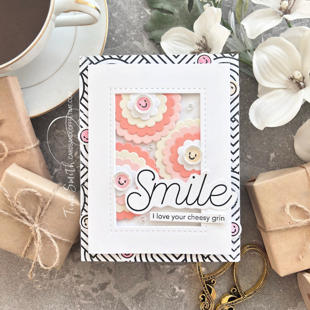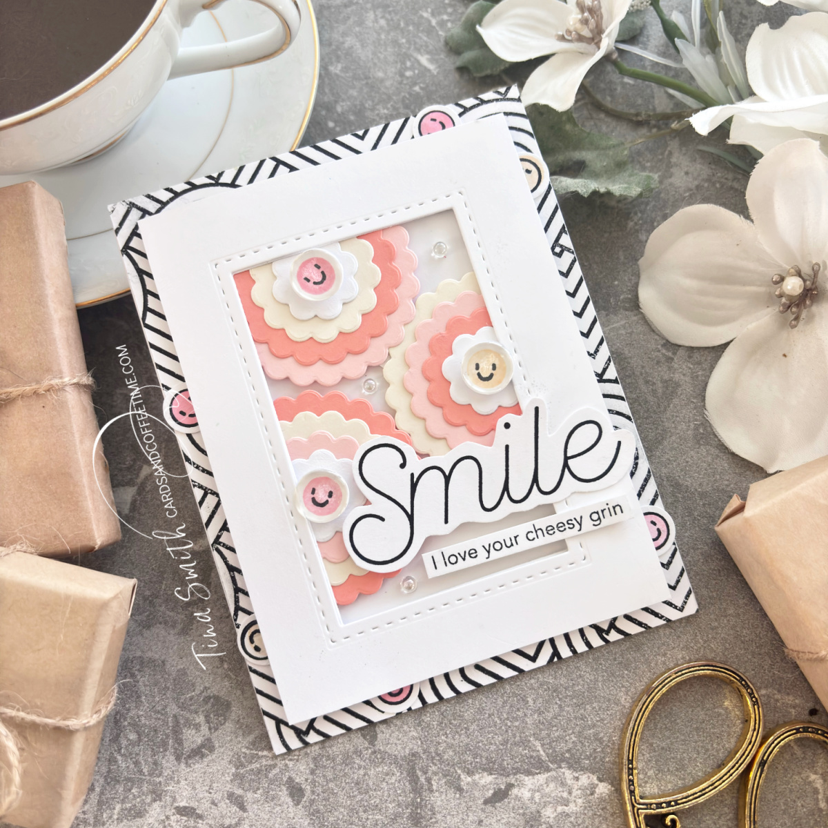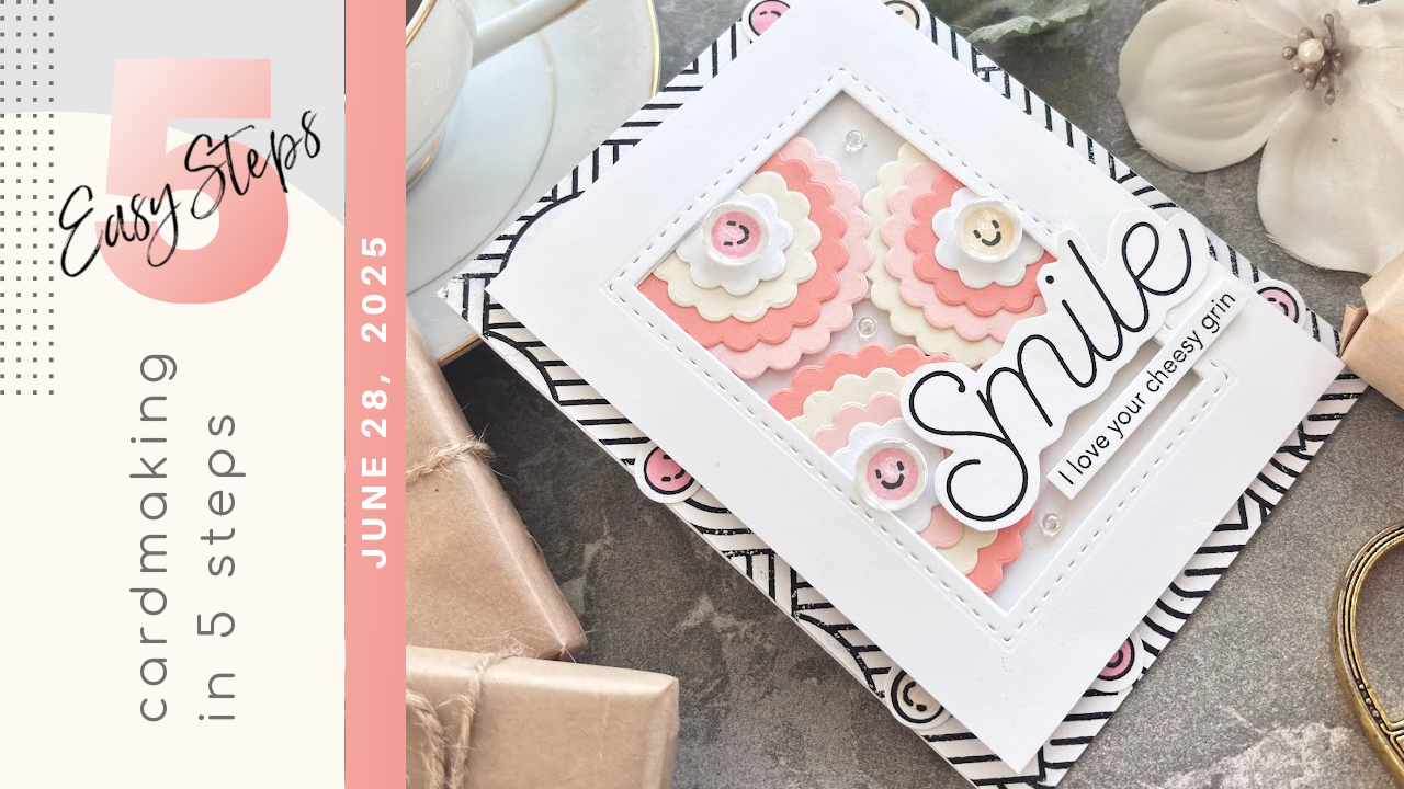 I hope you are having a wonderful day. Today, we are creating a cheerful card filled with smiles in 5 Easy Steps using some of the new items from the Simon Says Stamp Friend Like You Release. I am using the CZ Designs Smile Clear Stamp and the Simon Says Scalloped Circles Die Set. I hope you enjoy my project.