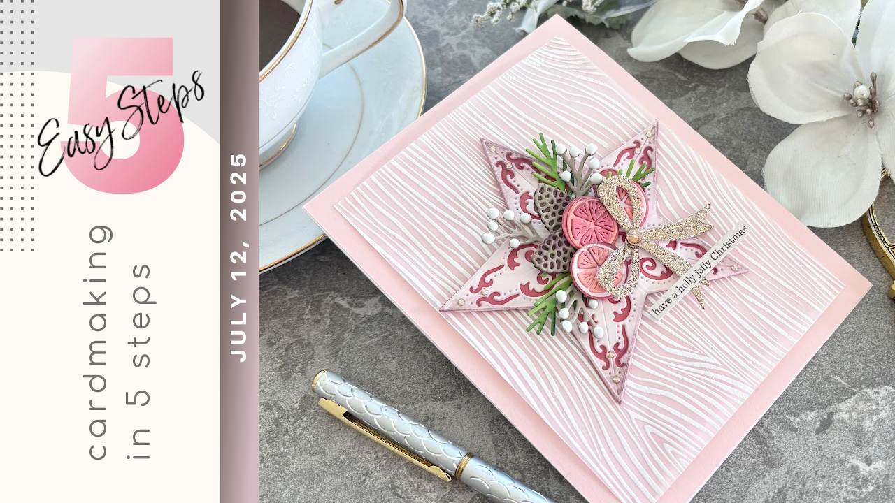 Just lovely! This card is so beautiful! And I like your new format of 5 steps in Cardmaking, kind of like a mini-class! Thank you for sharing your creativity!