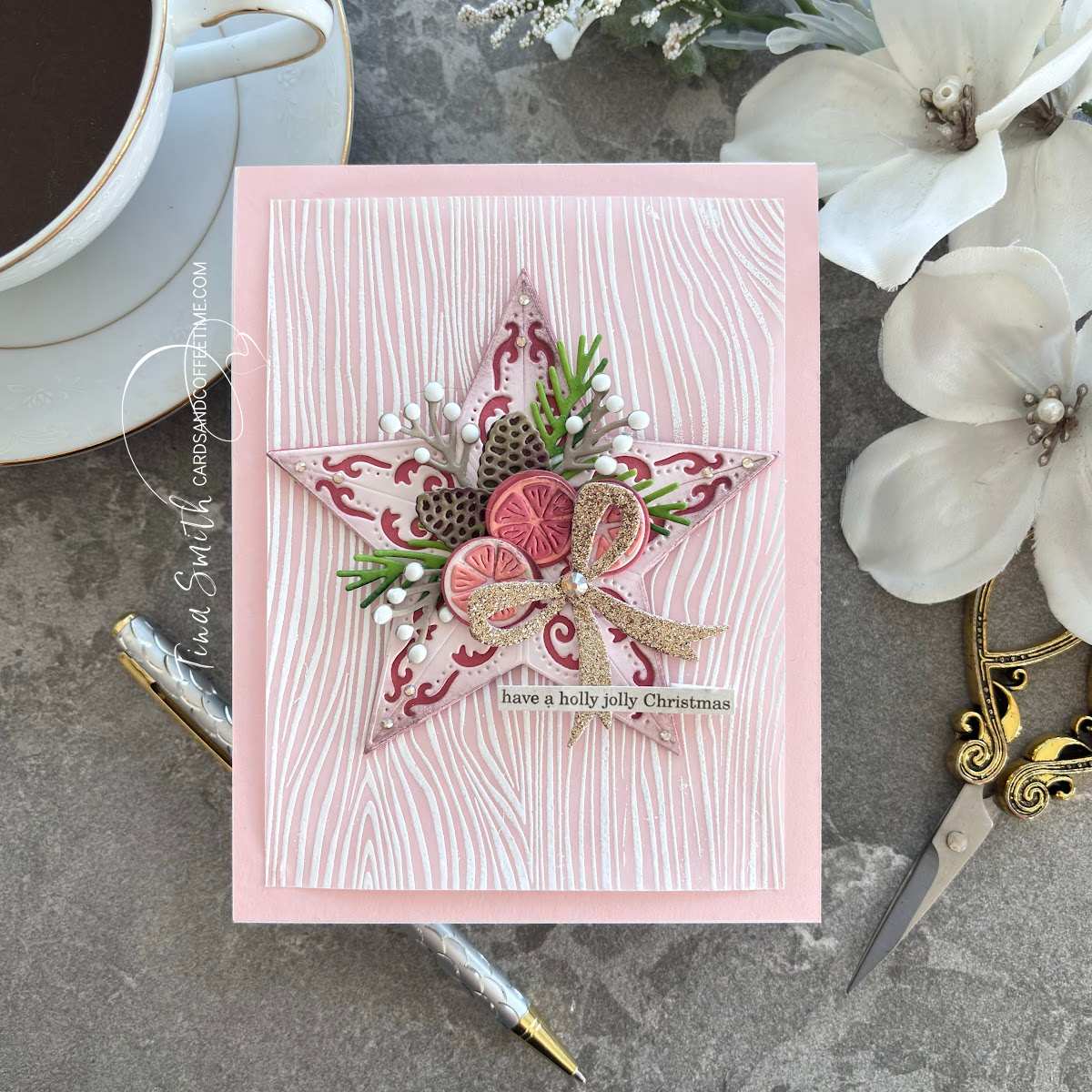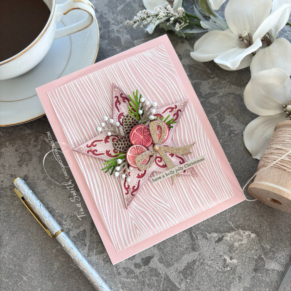 Today, we are creating a Christmas Card in 5 Easy Steps. We are mix matching supplies with some old and new from the stash items. My focal point was created with the Spellbinders Barn Star Wreath Etched Dies from the Country Christmas Collection! We are creating a soft yet rustic style card using non traditional colors, complete with dried oranges and pine cones. Enjoy the tutorial:)