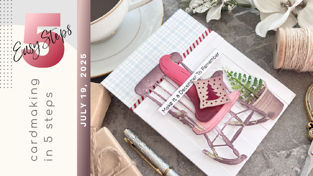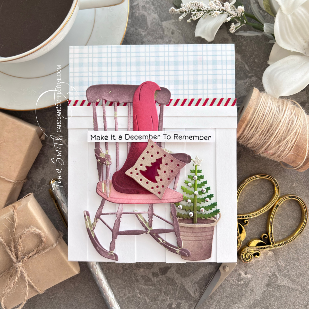 Today, we are creating a country Christmas Card in 5 Easy Steps complete with a board and batten background. My focal point was created with the Spellbinders Christmas Rocking Chair Etched Dies from the Country Christmas Collection! We are creating a soft yet rustic style card using pinks, blues and red colors. Plus, this distressed rustic rocker was actually a mishap turned perfect. Enjoy the tutorial:)