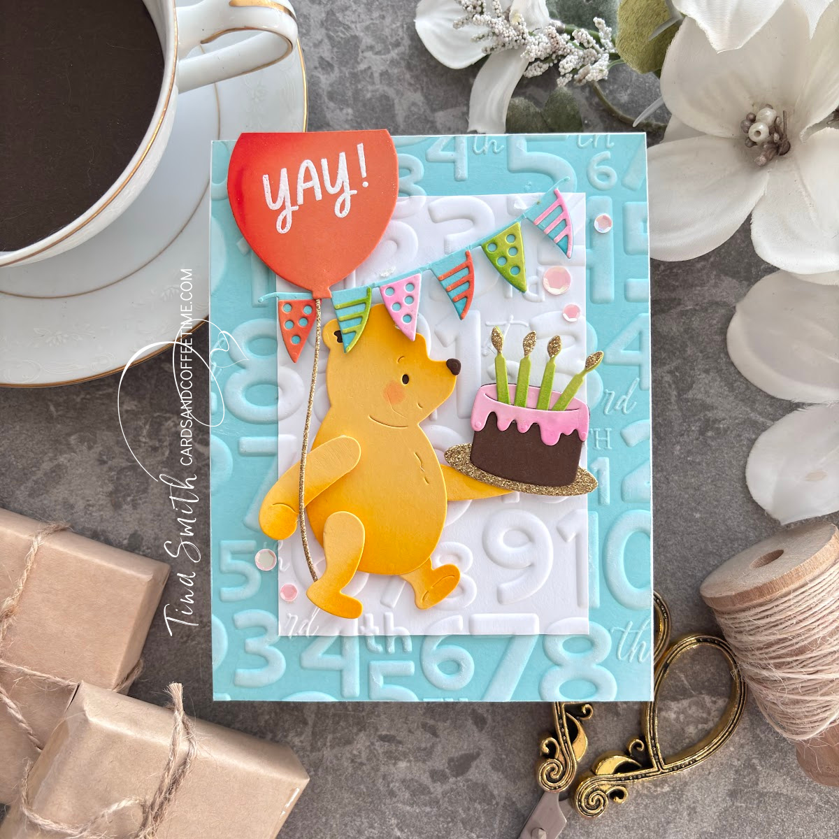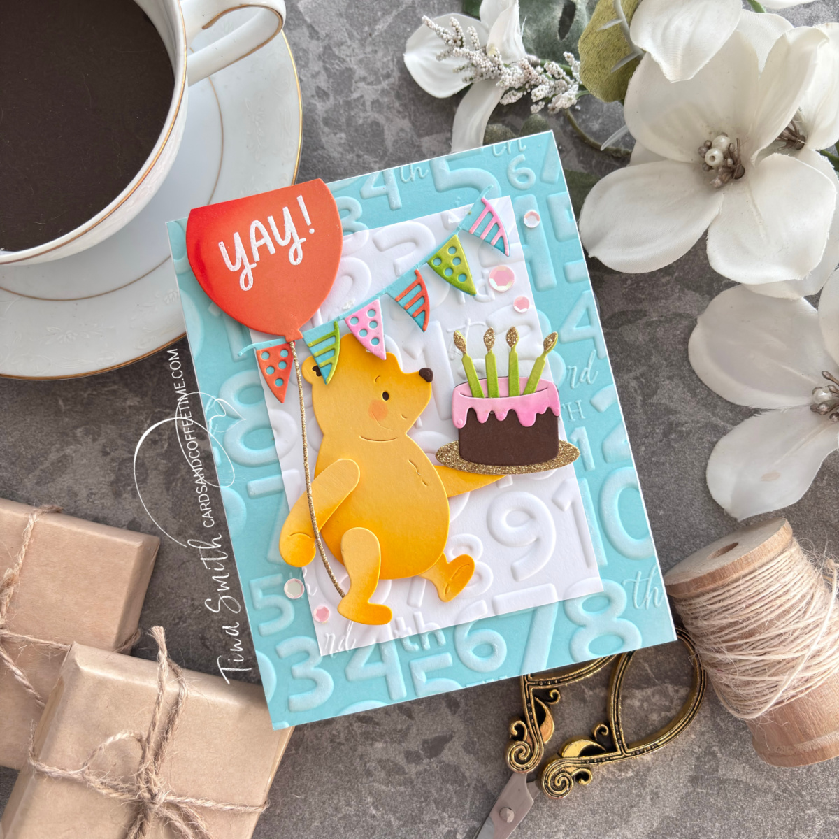 Today, we are creating an adorable Birthday Card complete with cake and a balloon in 5 Easy Steps. We are using the Spellbinders Classic Pooh Birthday Accessories Die Set, the Classic Pooh Birthday Numbers Embossing Folder and the Pooh & Piglet Die set to make this fun card! For some reason this card just made me smile! Enjoy the tutorial:)