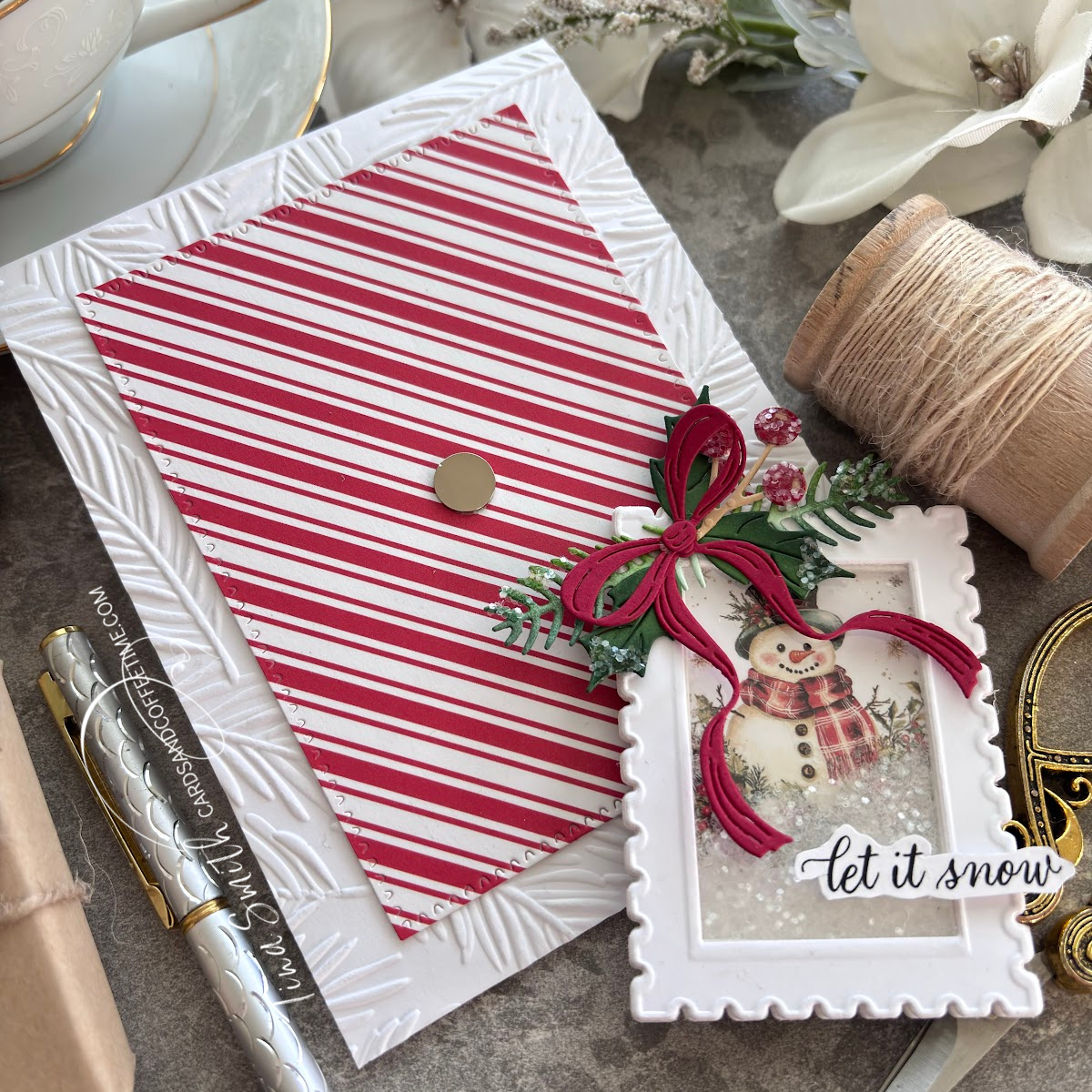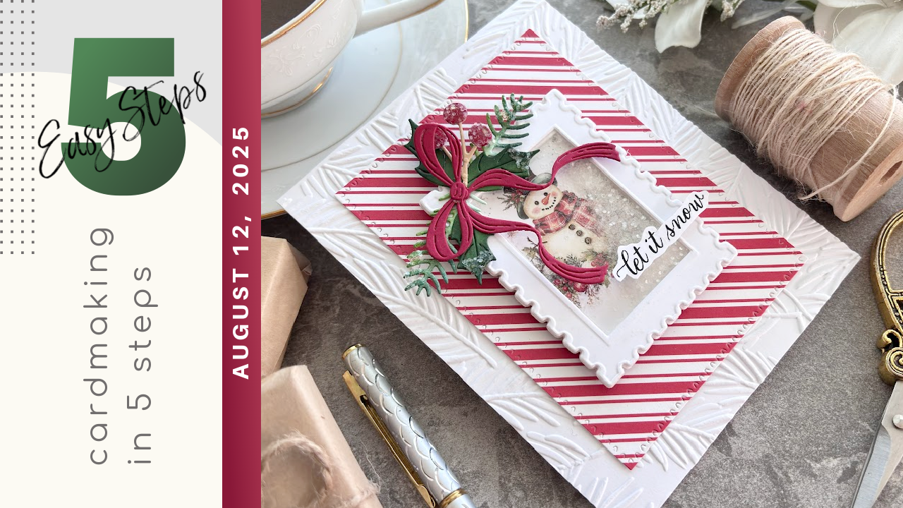 Today, we are creating a Christmas in August Card in 5 Easy Steps, and a Bonus card. These cards are special as they are gifts too! I placed a magnet on the card front so the shaker window is a removable keepsake for the Holiday Season that can be placed on any metal surface. We are using the fun Spellbinders Postage Stamp 3D Emboss & Cut Folder and the Holiday Magic Rub-On’s from the Holiday Magic Collection. Enjoy the tutorial:)