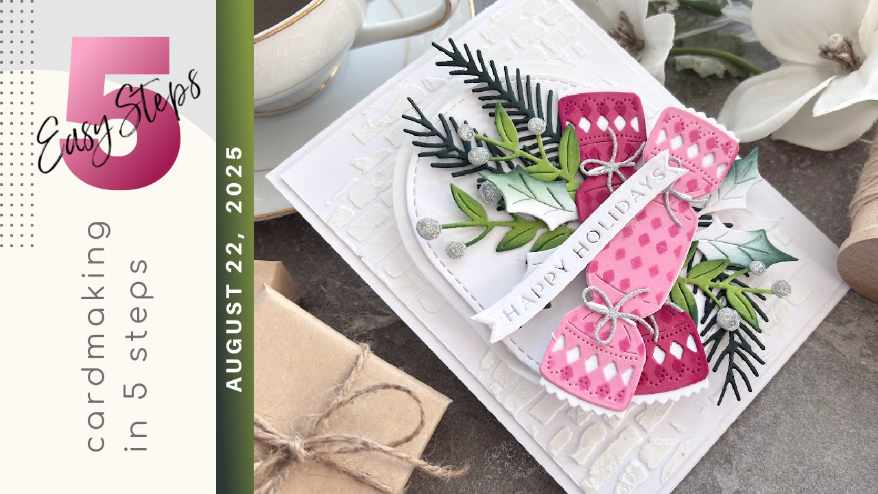 Today, we are creating a pretty Christmas Card in 5 Easy Steps. We are using the Spellbinders Christmas Cracker Die Set designed by Yana Smakula. They are the perfect size and I love that they come with lovely Christmas foliage. Brick always reminds me of fireplaces and fireplaces always remind me of Christmas to I created a fun and easy brick background too! Enjoy the tutorial:)