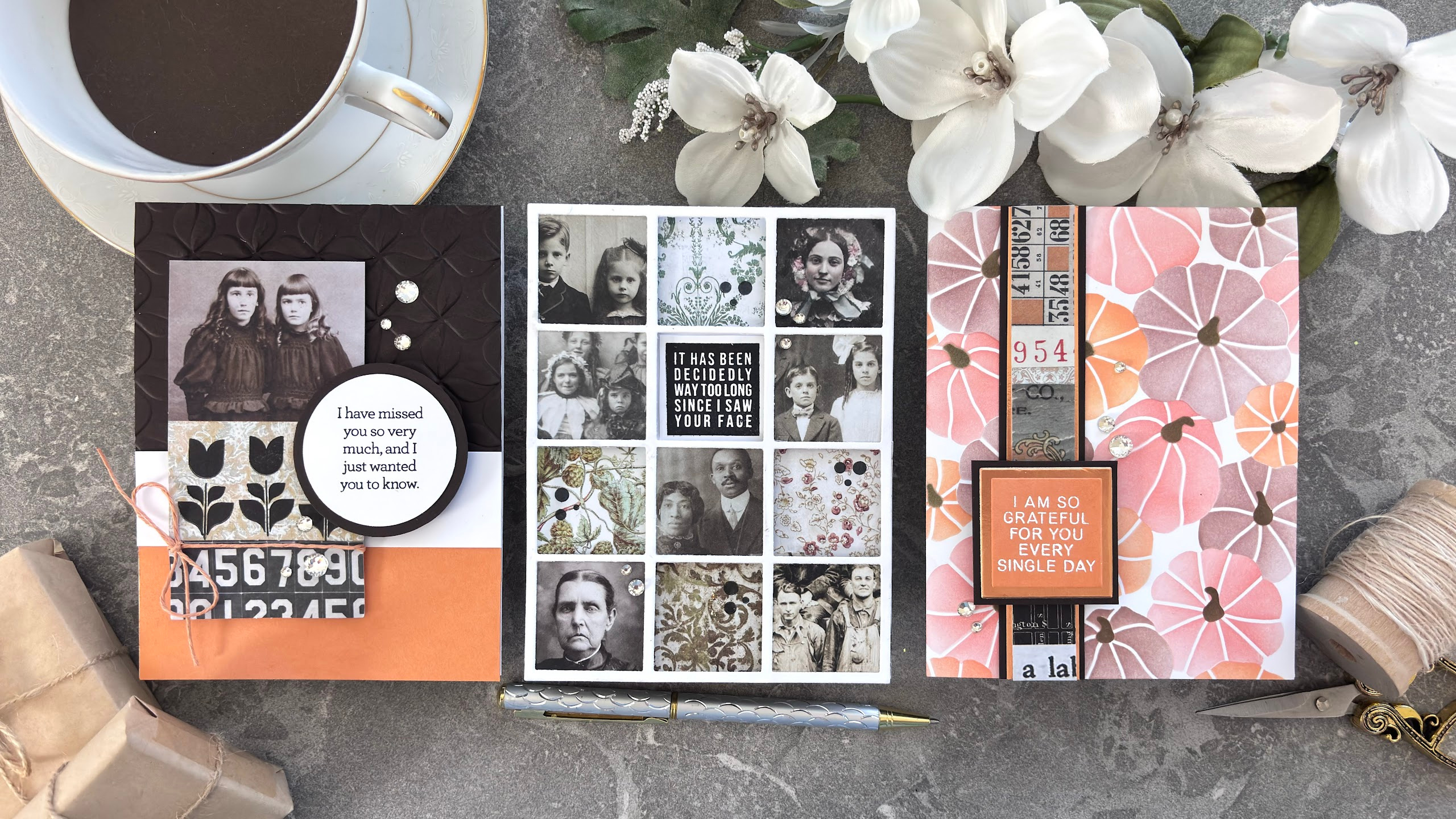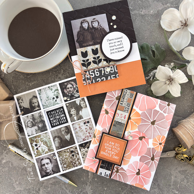 I’m happy to share with you three OUTSIDE of the BOX cards, using just the Simon Says Stamp Fall Vibes card kit contents and a few basic craft room supplies. Inside the amazing latest Simon Say Stamp Card Kit, you’ll find lots of craft stashing-crafty goodies. Today, I am focusing on the Tim Holtz Collage Strips, the Layering Stencil, the Stamp Set and the awesome cardstock. I love how they all turned out and hope you love them too.