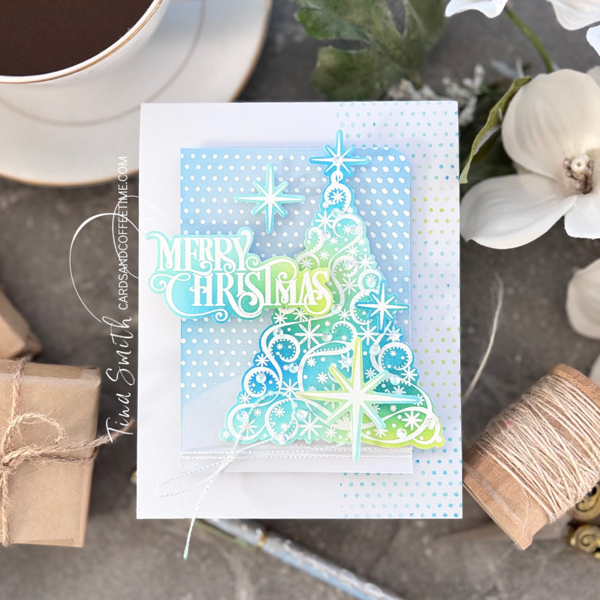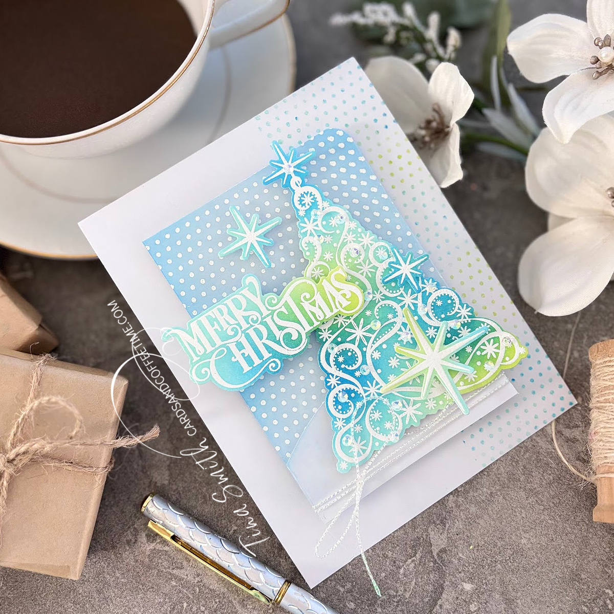 Hi there, I am delighted to share a beautiful non-traditional color Christmas card project featuring the Simon Says Stamp & Gina K Designs Exclusive Collaboration Stamp and Die set for STAMPtember® 2025. This is a stunning Christmas set called Shimmering Christmas, the coordinating dies cut out each of the images and greetings too! I am doing some simple ink blending that can be done with any color trio you love. Don’t wait — head over to the Simon shop and grab yours before they’re all gone.