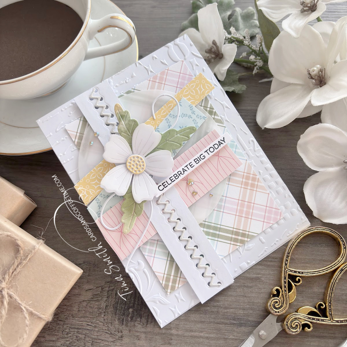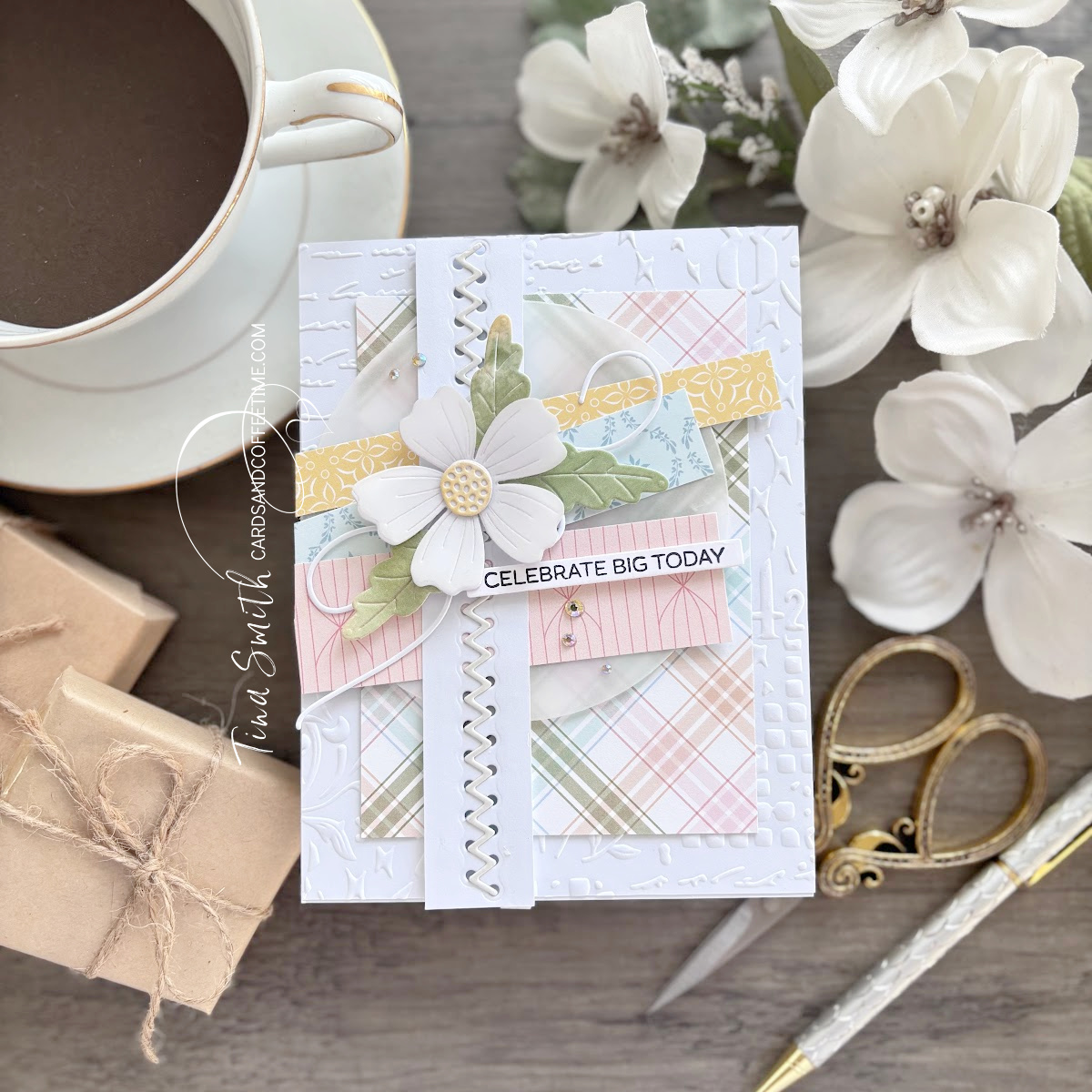 Today, we are creating a Celebrate card in 5 easy steps. We are breaking out the 6×6 paper pads and creating a pretty Celebrate Big Today card with a few items from Spellbinders Beautifully Imperfect Collection. I absolutely fell in love with all the dies in the Tangled Threads Etched Die set. There is so much that you can do with it. The Distress Mix 3D Embossing Folder makes a great background and takes the guess work out of mixed media designs, it’s fabulous. Enjoy the tutorial:)