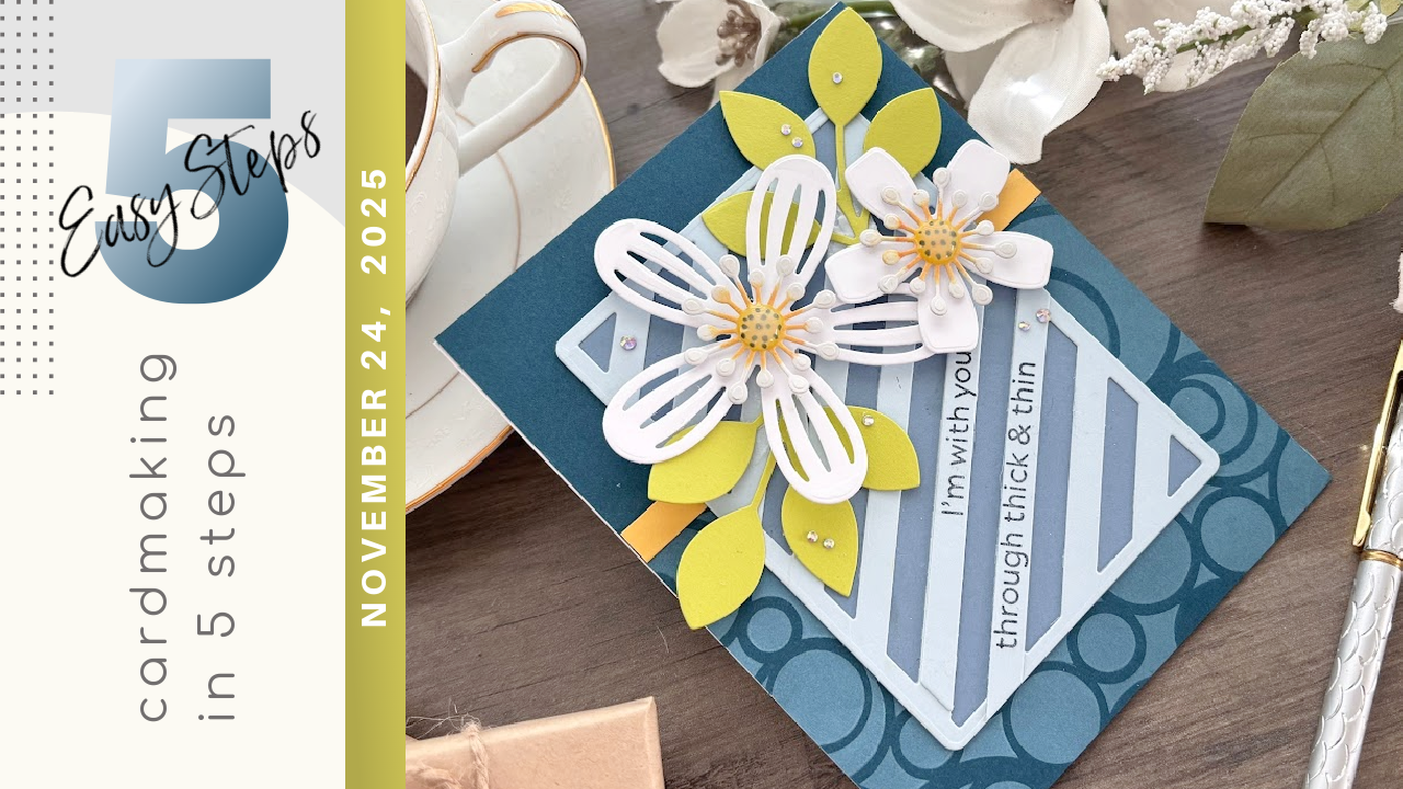 Today, I’m feeling a little blue (with color I mean). Or maybe you know someone who is? There’s nothing like getting a little something special in the mail, so let’s use some of that glorious stash we all pretend doesn’t exist and make an encouragement card that’s so cute, it practically winks at you. Grab your supplies and let’s get a little messy!