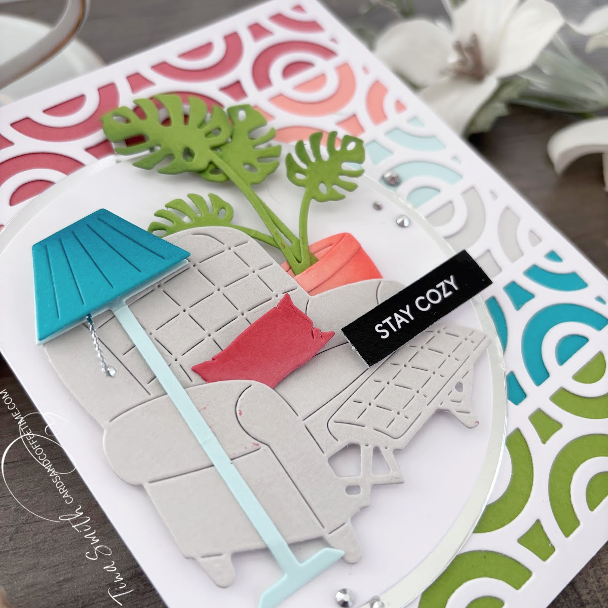 For the first card, I went for “organized plant lady” vibes with a picture frame and light fixture—perfect for telling someone you miss them. For the second, I embraced full hermit mode with an armchair and a lamp because “stay cozy” is basically my life motto. Check out the tutorial and let’s get crafty!