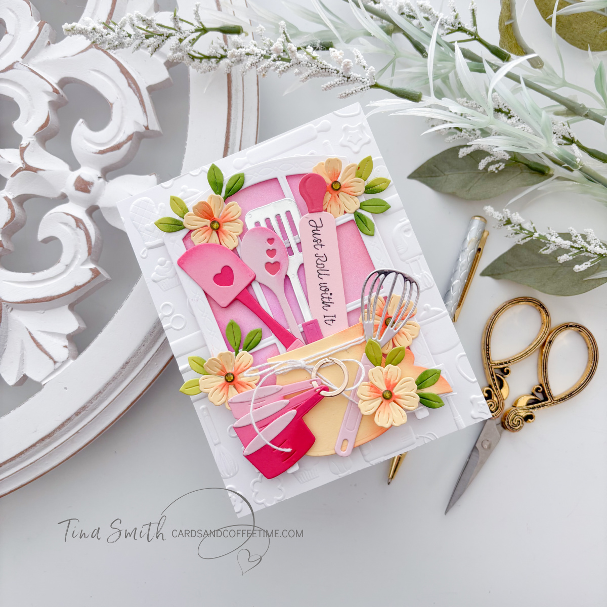I’ve mapped out the process in five simple steps using my Spellbinders Make It & Bake It Collection. One of the best parts of this collection is how easily you can mix and match the pieces. For this look, I took the utensils from the Fluff, Frost & Roll Die Set and tucked them into the cookie jar from the Measure Mates Set to create a little kitchen canister!