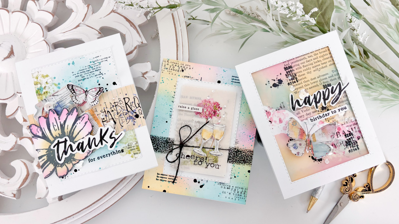 We’re creating three mixed media cards the Simon Says Stamp April 2026 Card Kit. When I do mixed media, I like to create project ideas that can be easily re-created. Making it easy for you to follow along.