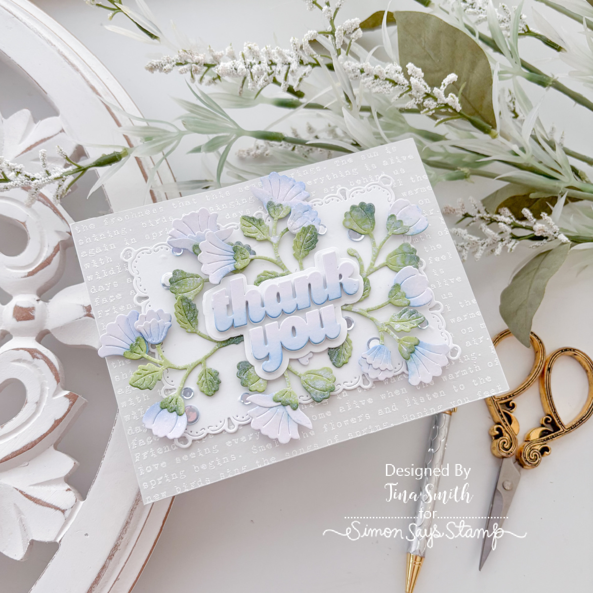 Hi there lovely cardmakers! I’m popping in with a sweet and pretty thank you card featuring the Honeybell Floral dies and some other treats from the Simon Says Stamp In My Heart release.