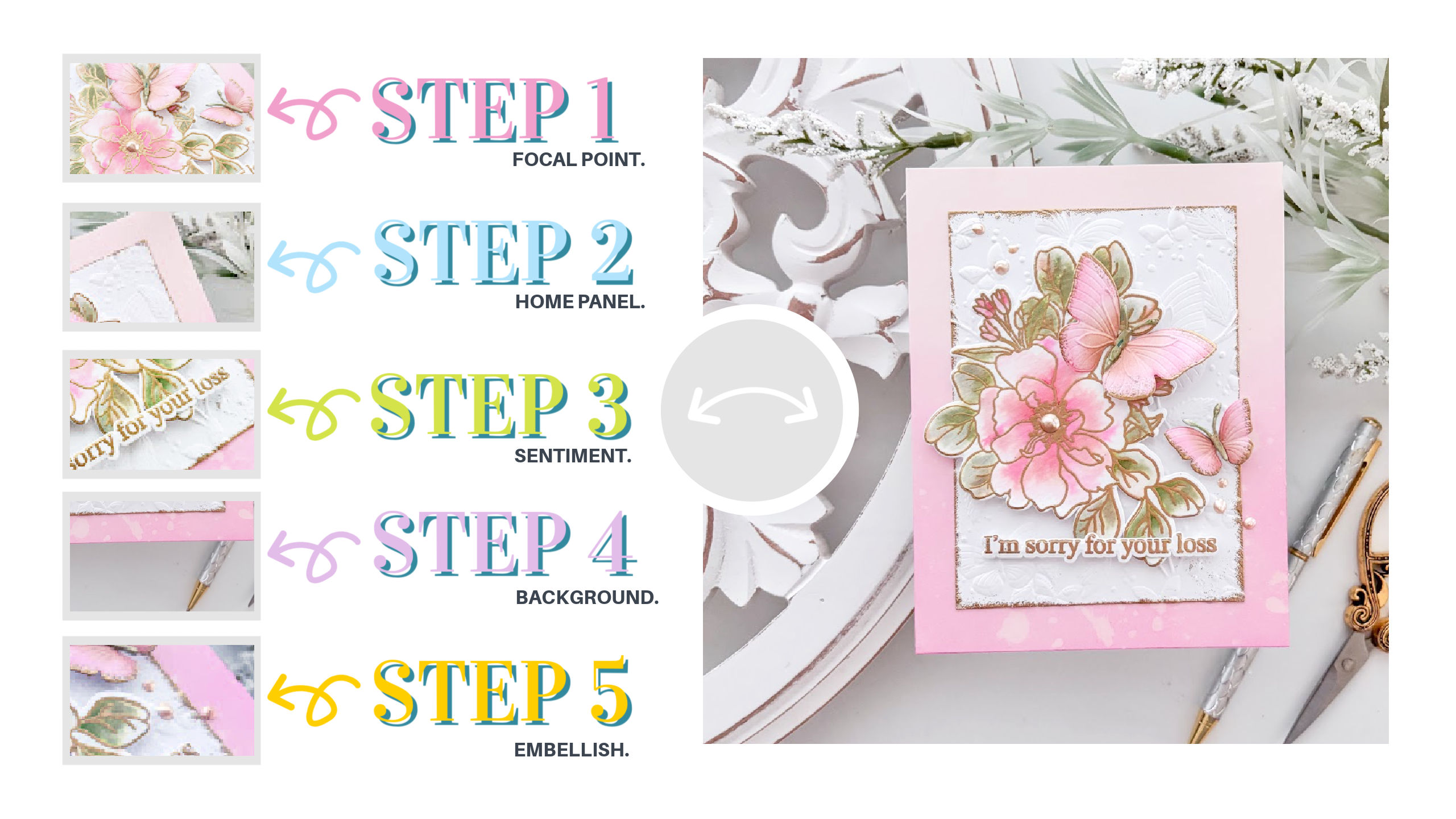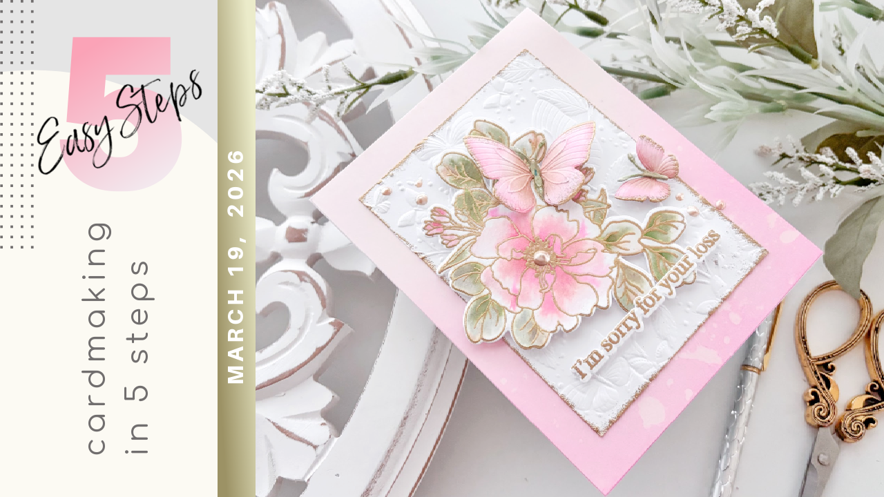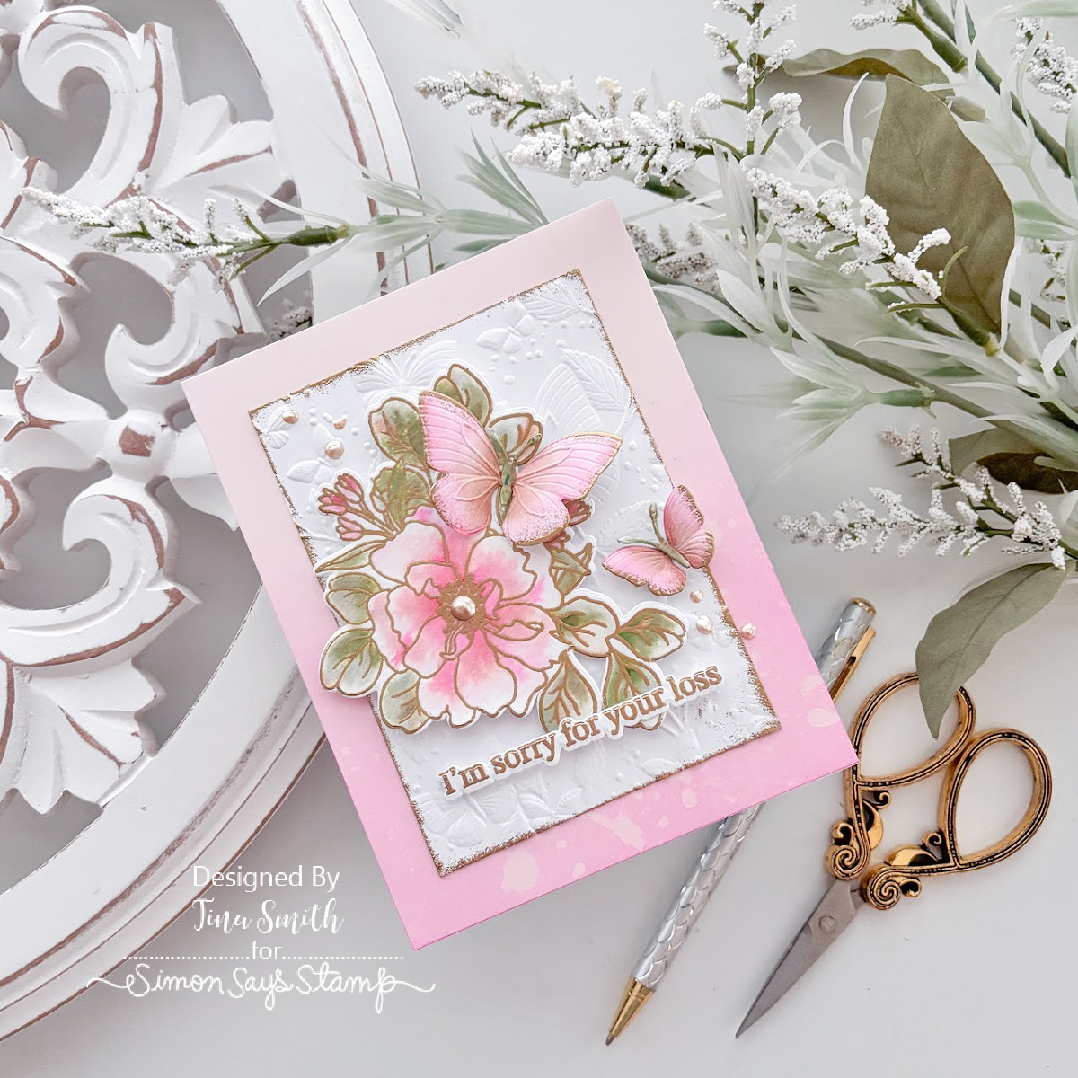 Hi there awesome cardmakers! Today I’m sharing a super sweet sympathy card that comes together in just 5 easy steps. I’m featuring the Wild Rose Stamp & Die Set along with a few other goodies from the Simon Says Stamp In My Heart release.